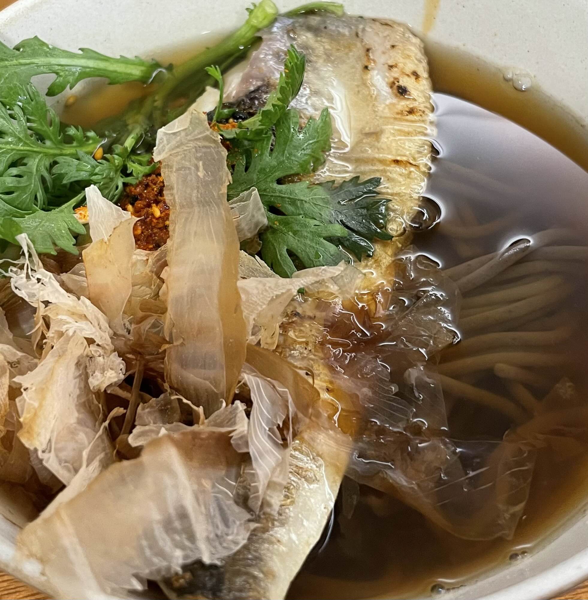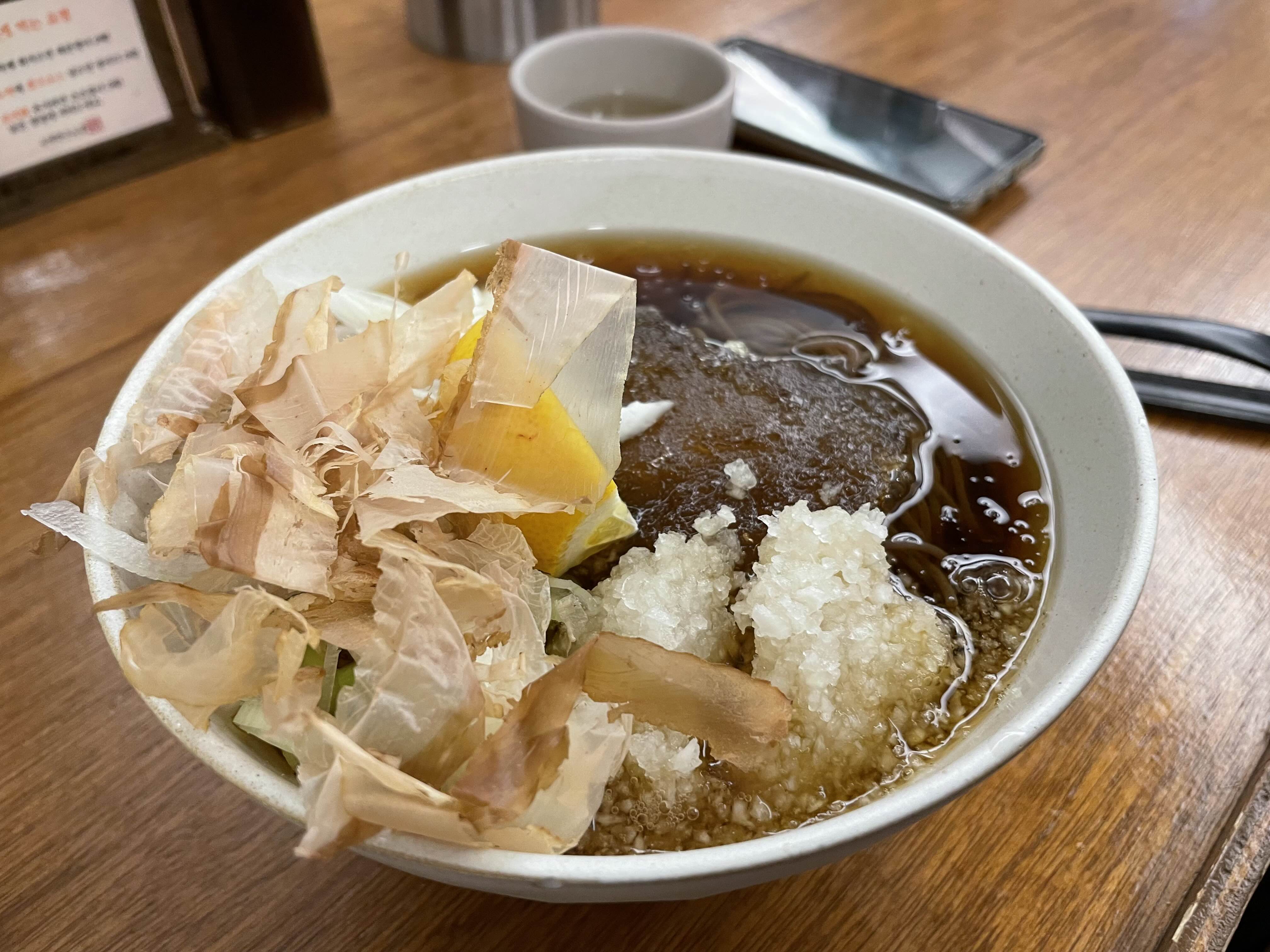 원래 이 곳에 가봐야지...라고 생각한 이유는 이곳이 세계 최초 개발했다는 "메밀납작소바 "를 먹어보기 위해서였는데 우리가 매장에 갔을땐 납작소바는 이미 품절이었다. 그래서 나는 고등어온소바를, 친구는 냉소바를 주문했다.