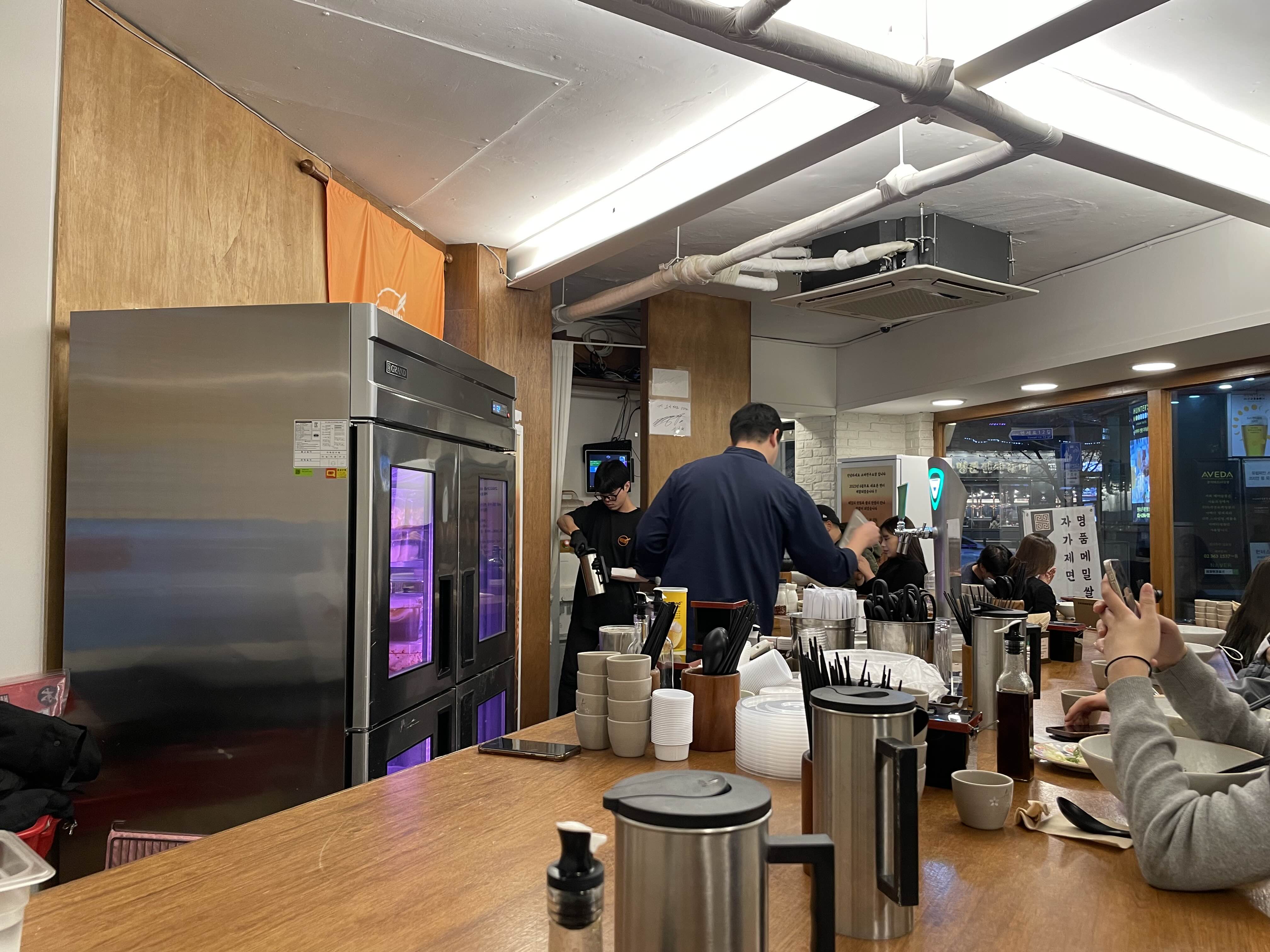 저녁 시간에 갔더니 매장이 몹시 붐볐다. 대기는 하지 않고 바로 착석할 수 있어 다행이었지만, 우리의 자리는 바에 남은 마지막 두 자리! 그래서 두꺼운 겨울 옷을 벗어두거나 가방을 내려놓을 곳이 없어서 살짝 불편했던 관계로, 사진을 많이 찍지 못했다. 매장도 워낙 붐벼서 매장 사진은 이것 하나만 찍었다. (식사를 다 하고 나올땐 매장이 한적해 졌었는데 사진 찍는 걸 까먹었다.)