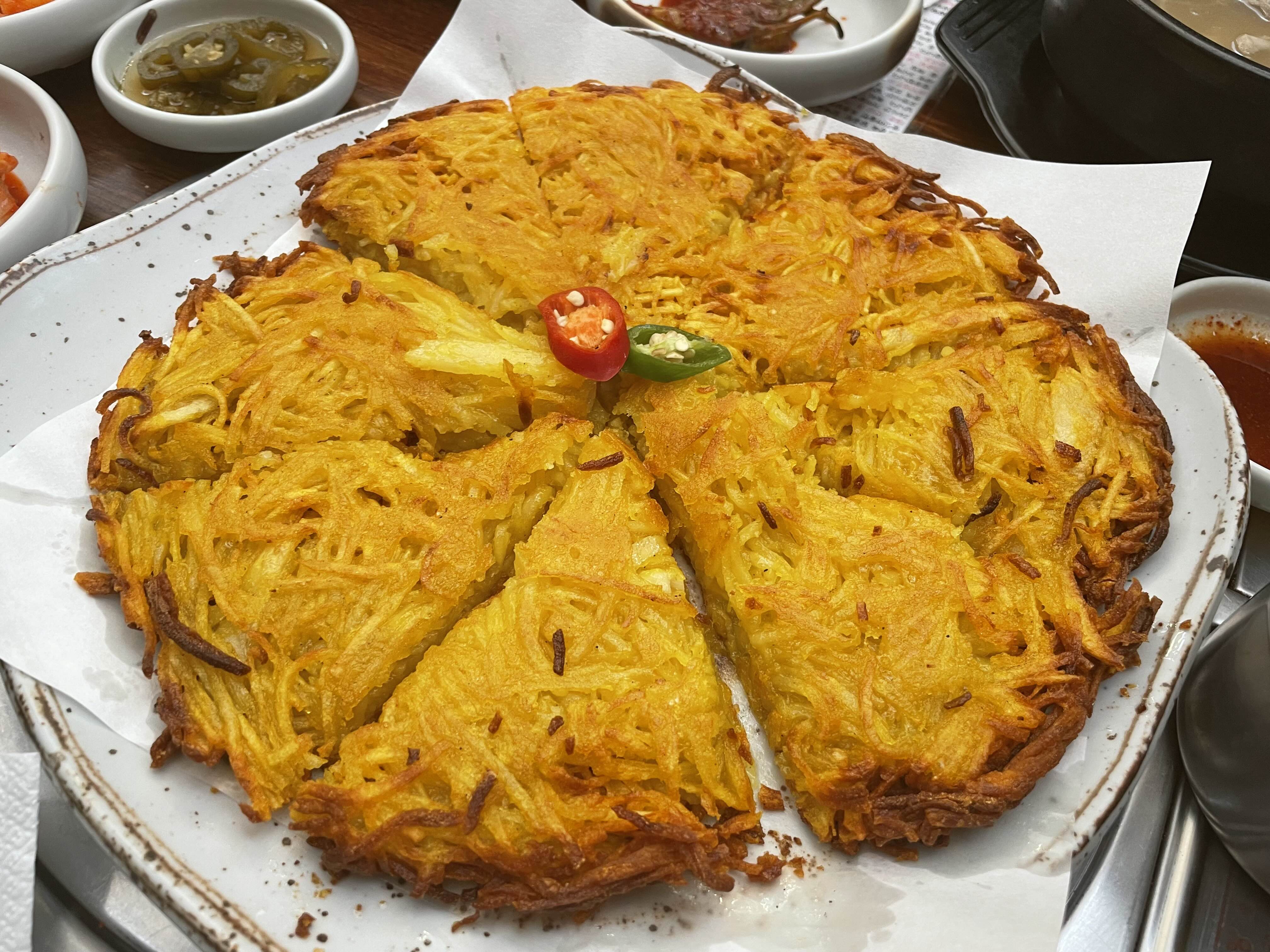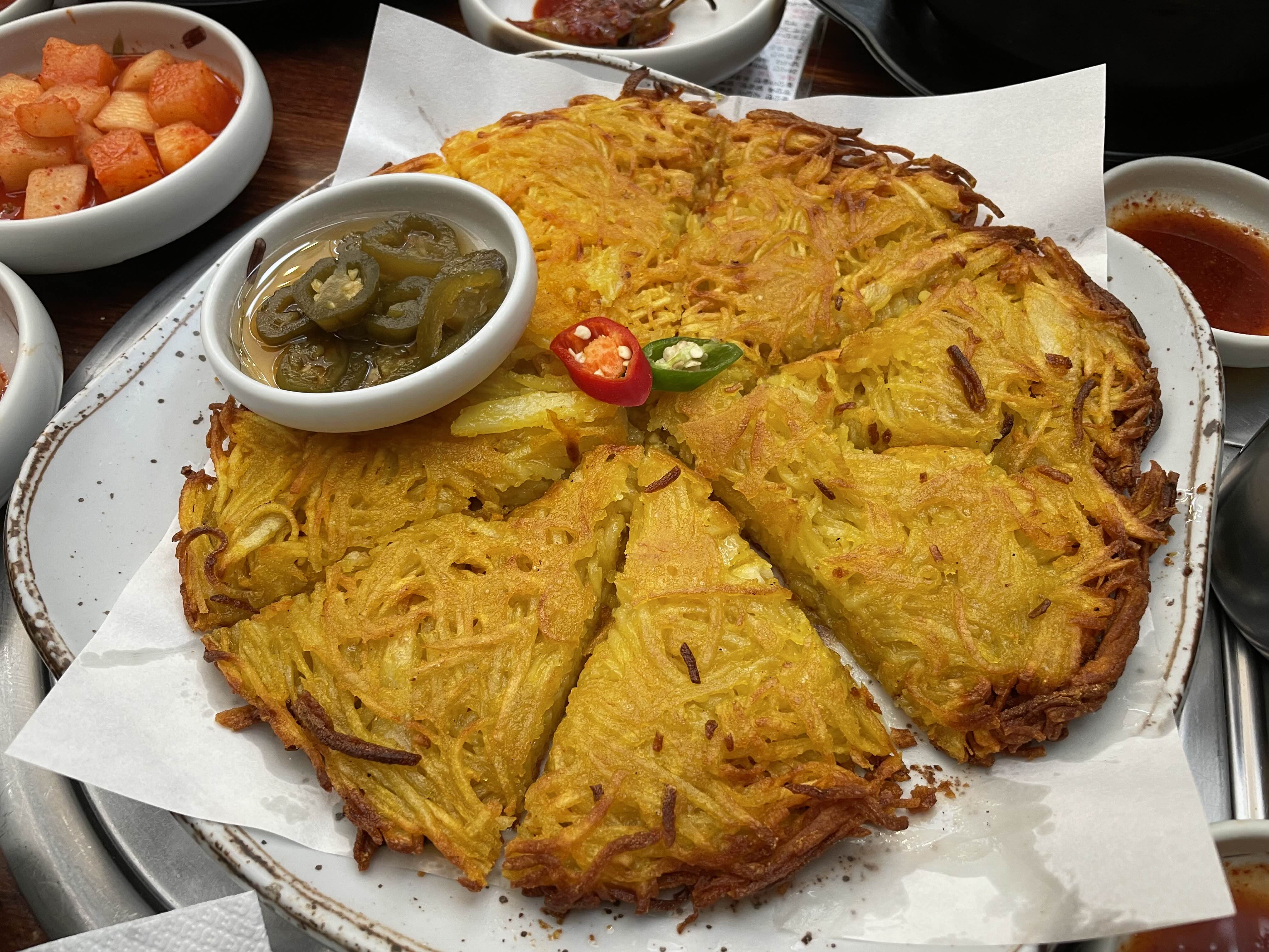 갓 부쳐나온 감자전, 말해 뭐해… 바삭하고 고소하고 아주 맛있었다❤️