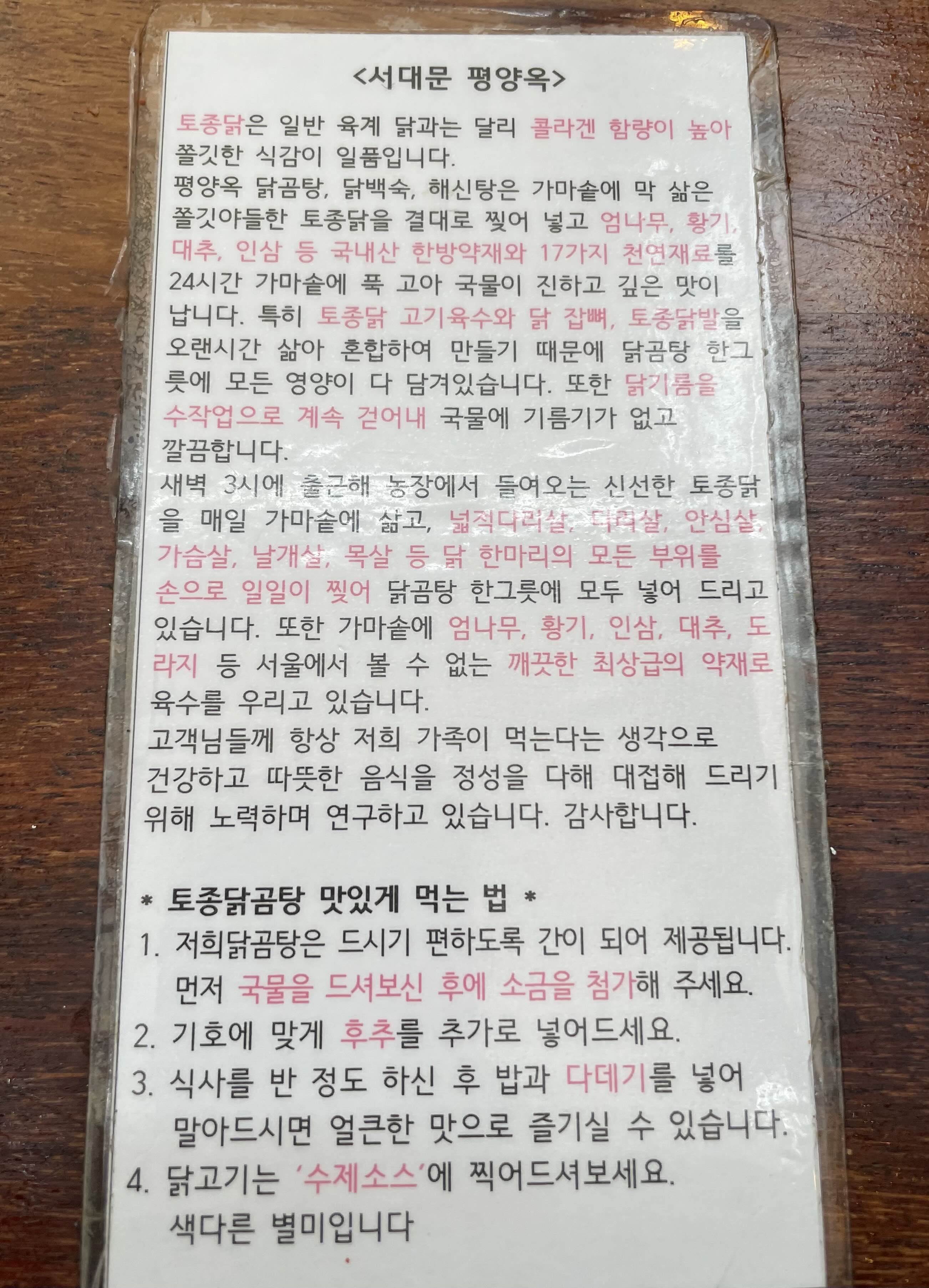 서대문 평양옥. 가마솥 닭곰탕집.