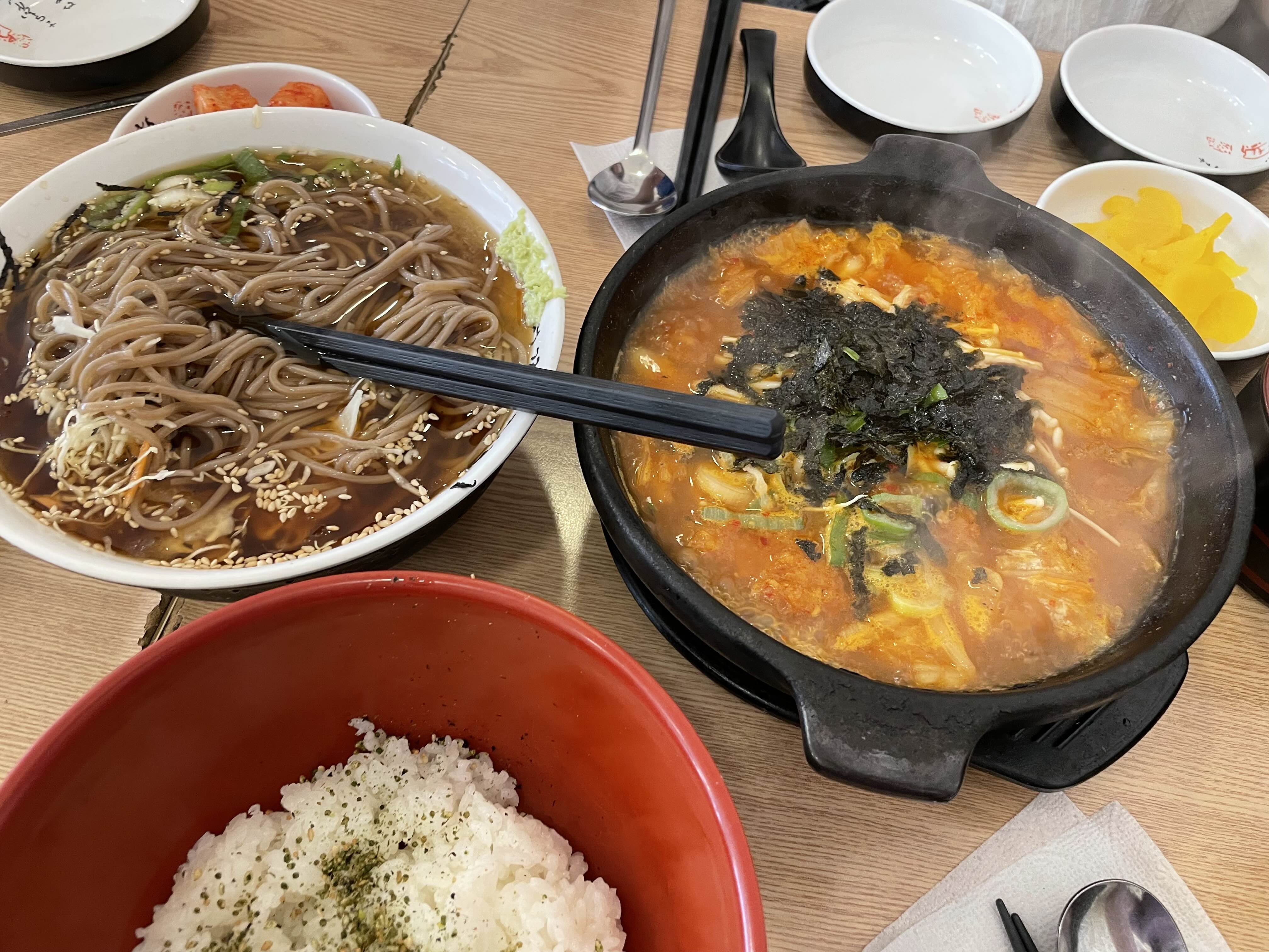 곰소바의 냉소바와 김치나베돈까스