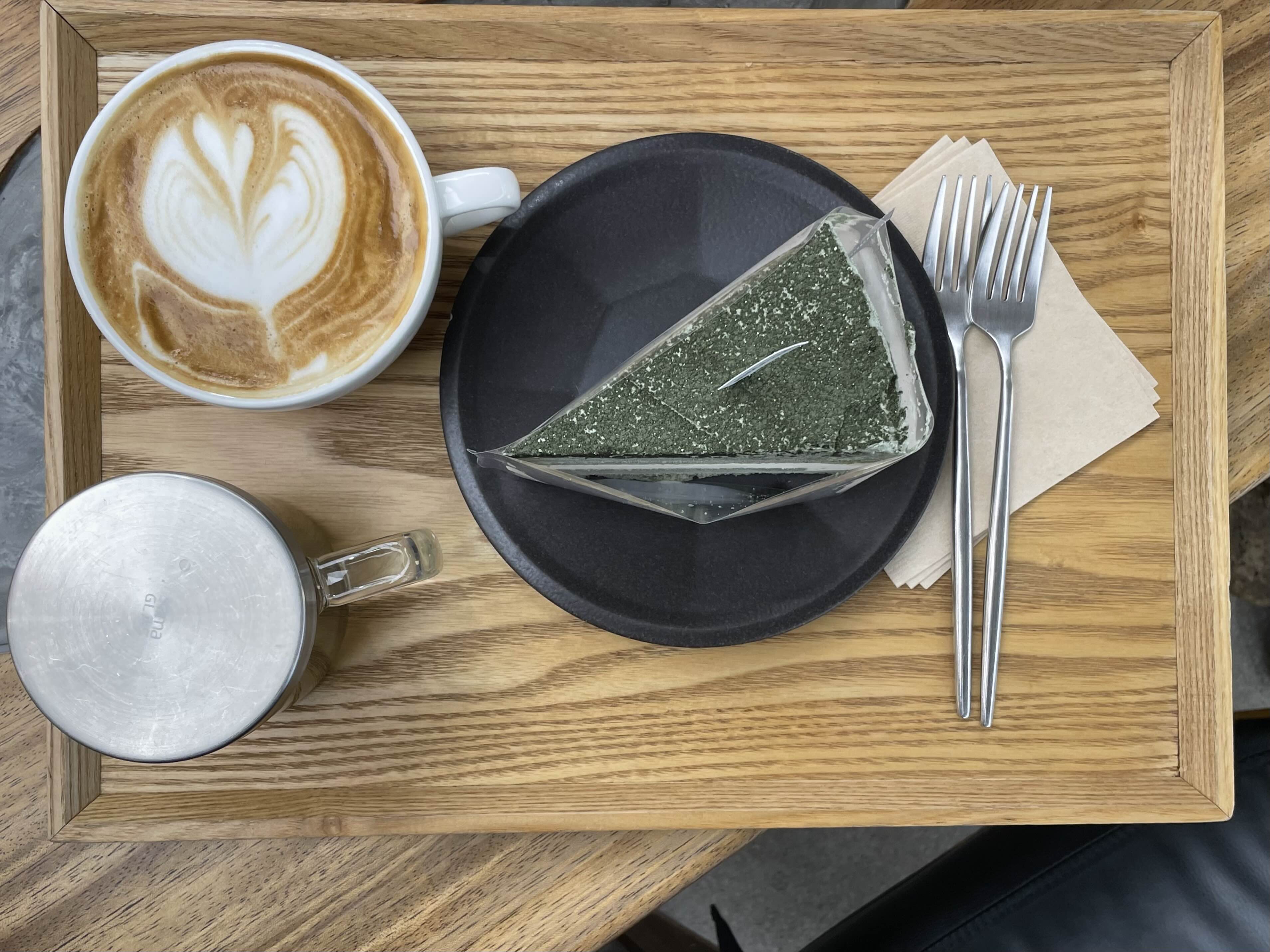 아무튼 비바람을 뚫고 들어가 먹은, 큰 컵 가득한 라떼와 쑥절미케이크 둘다 참 맛있었다. 심지어 이 라떼가 이 날의 첫 커피라 더 각별하게 맛있었다.