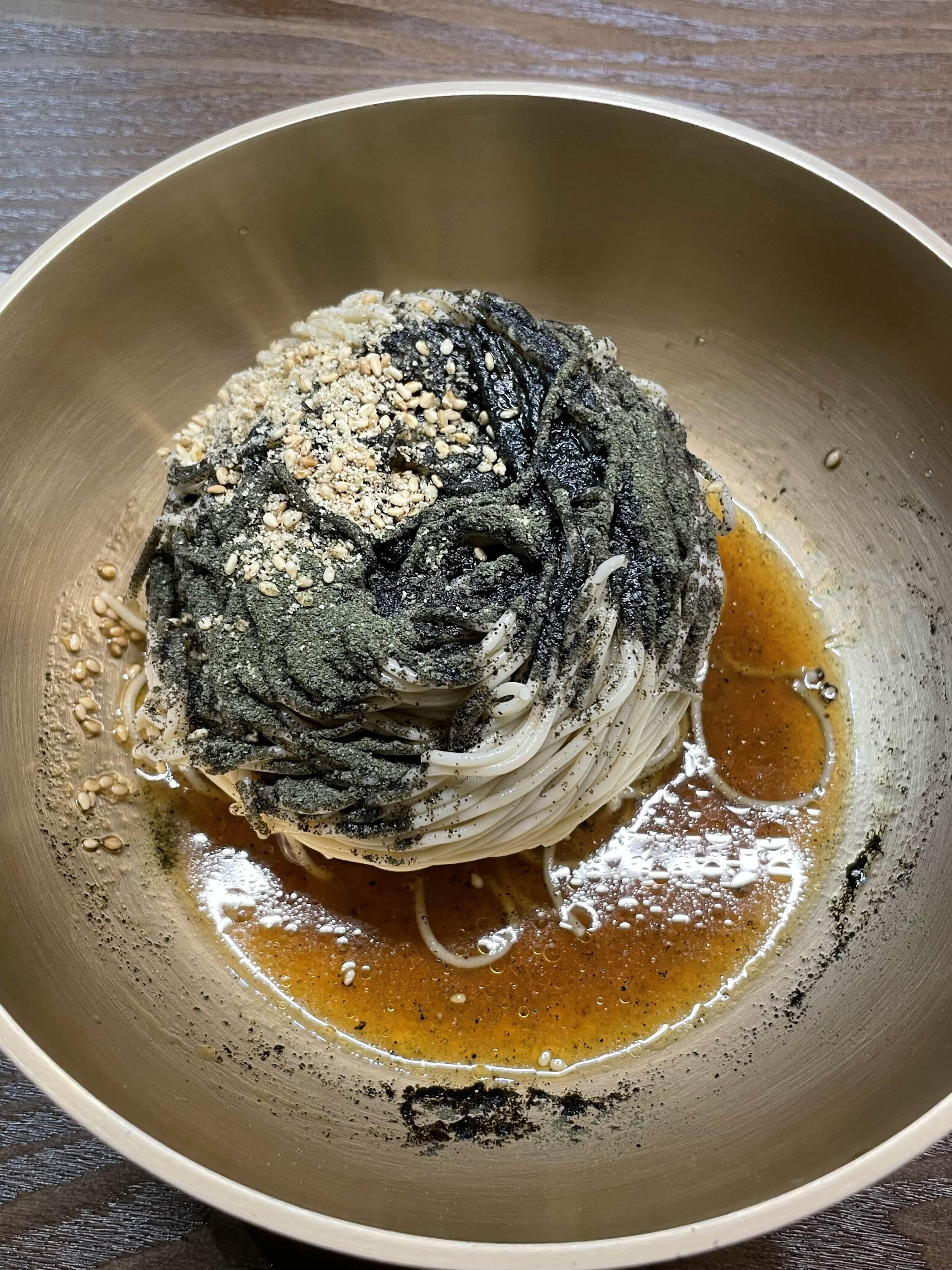 열심히 비빈 들기름 메밀면과 닭 불고기의 조화가 아주 훌륭👍 굿굿.