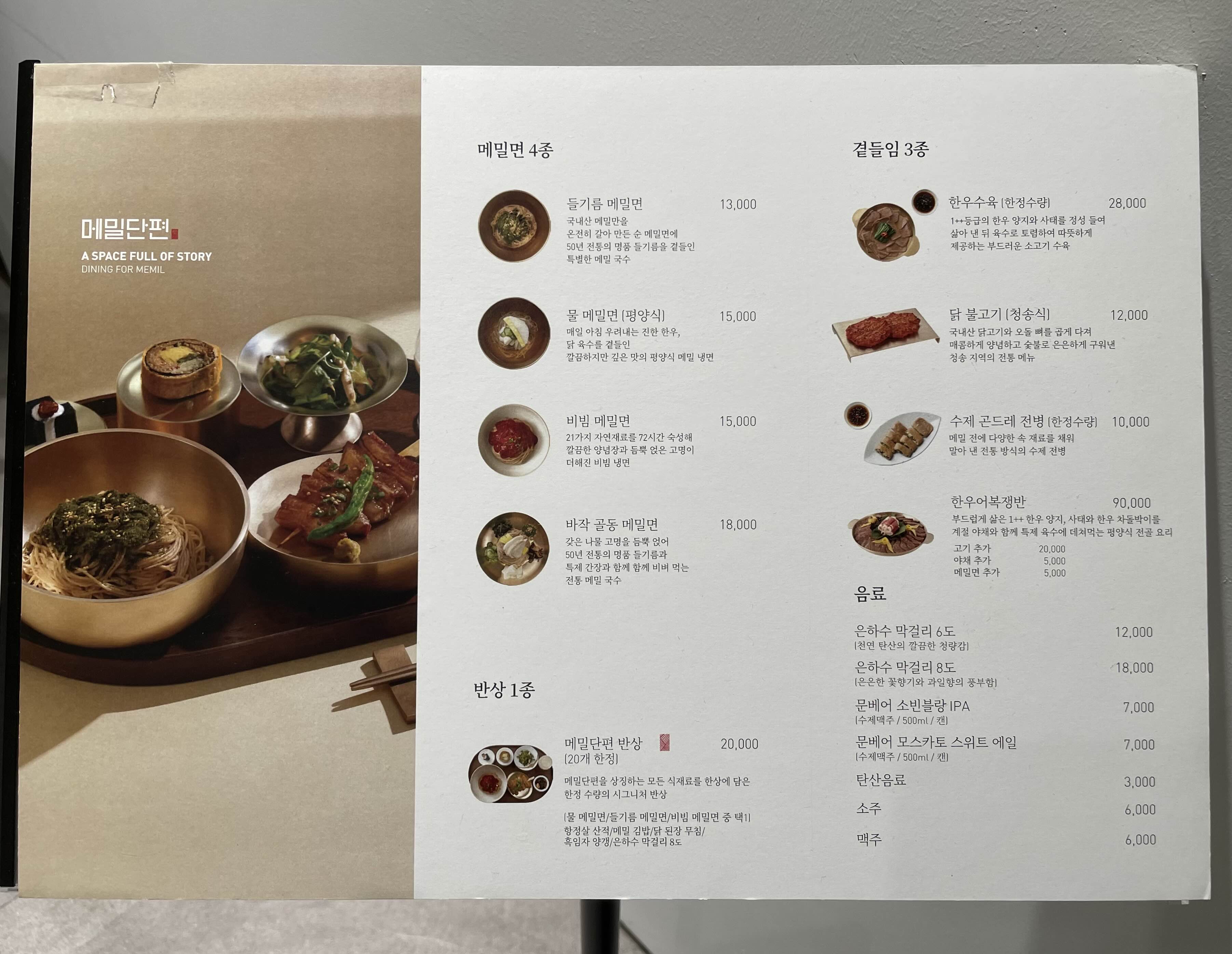 이 글 쓰면서 알았는데 메밀단편은 교촌에서 낸 메밀집이라고 한다. 오오…? 이태원에 교촌필방이라는 치킨 오마카세집을 만든 건 알고 있었는데 메밀 가게도 만든지는 몰랐다. 교촌필방 후기는 꽤나 호불호가 갈리는 편이던데, 그래도 다양한 시도를 하는 점은 좋은 것 같다. 가게 이름들도 문학적이고ㅎ 인테리어도 마음에 든다.