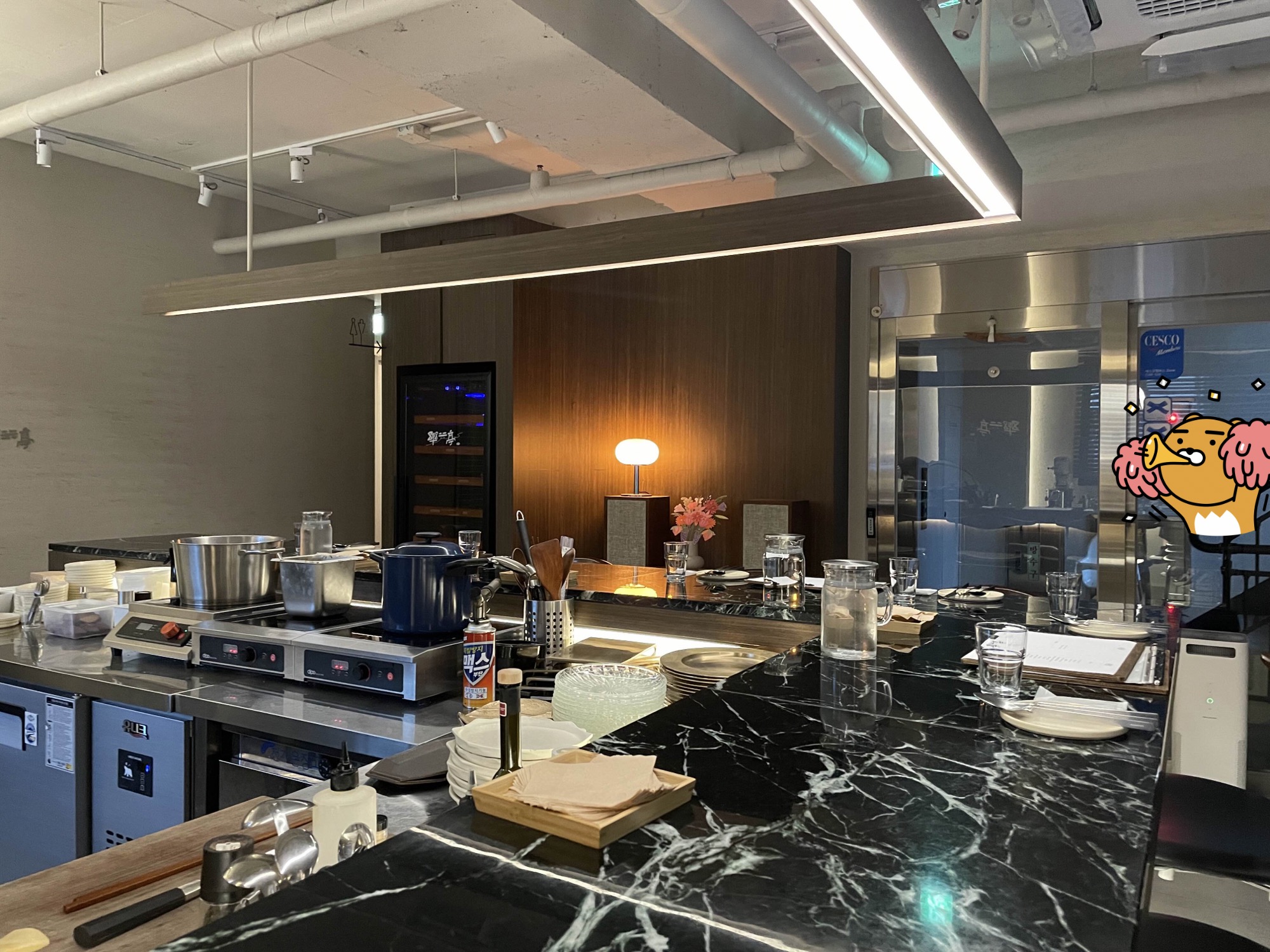 기역자 바 자리 + 여러명이 앉을 수 있는 긴 테이블 한 개로 구성되어 있는 작고 멋진 가게였다.