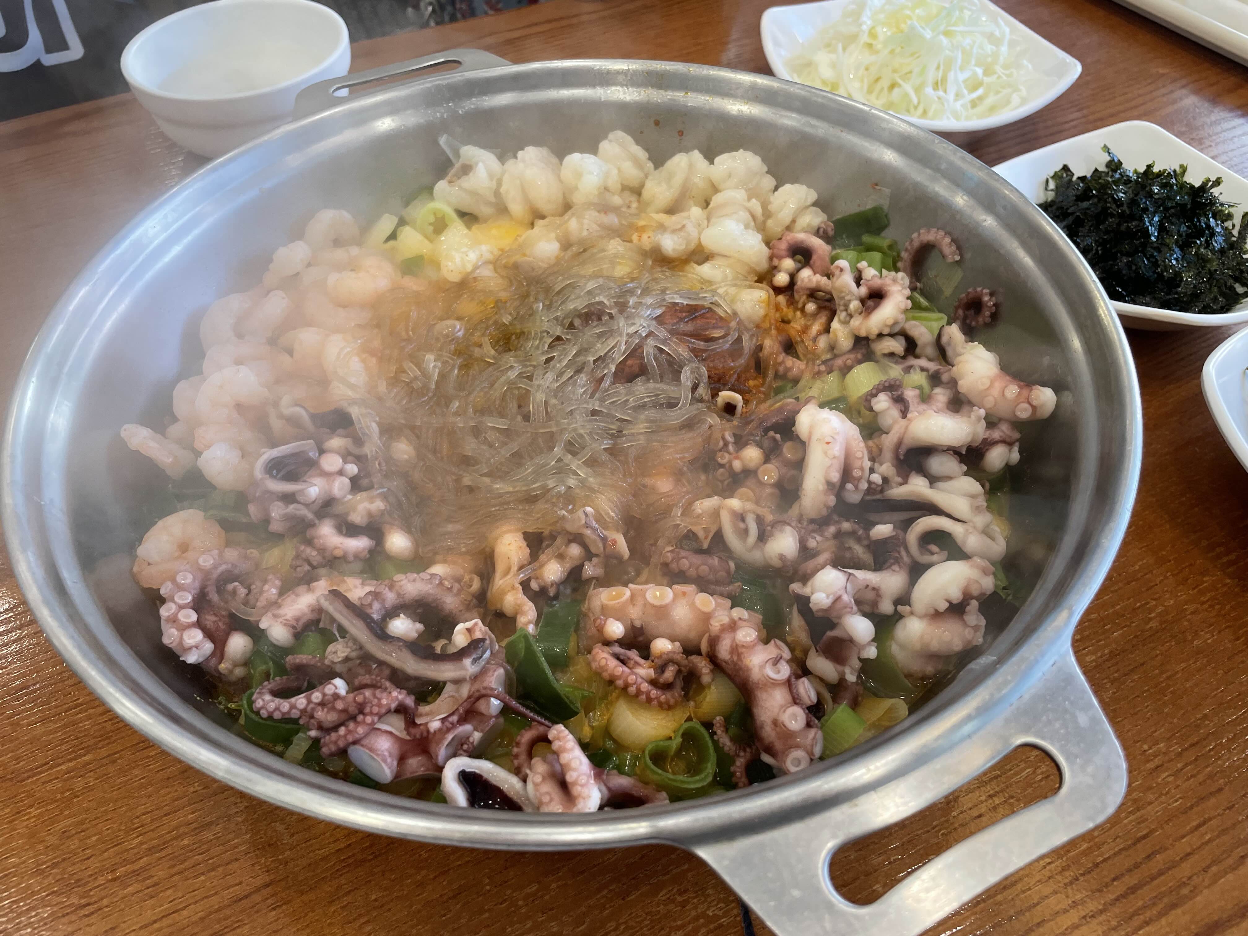 인데 난 곱창을 안먹으니까 낙지랑 새우만 건져 먹었다. 맛있었다.