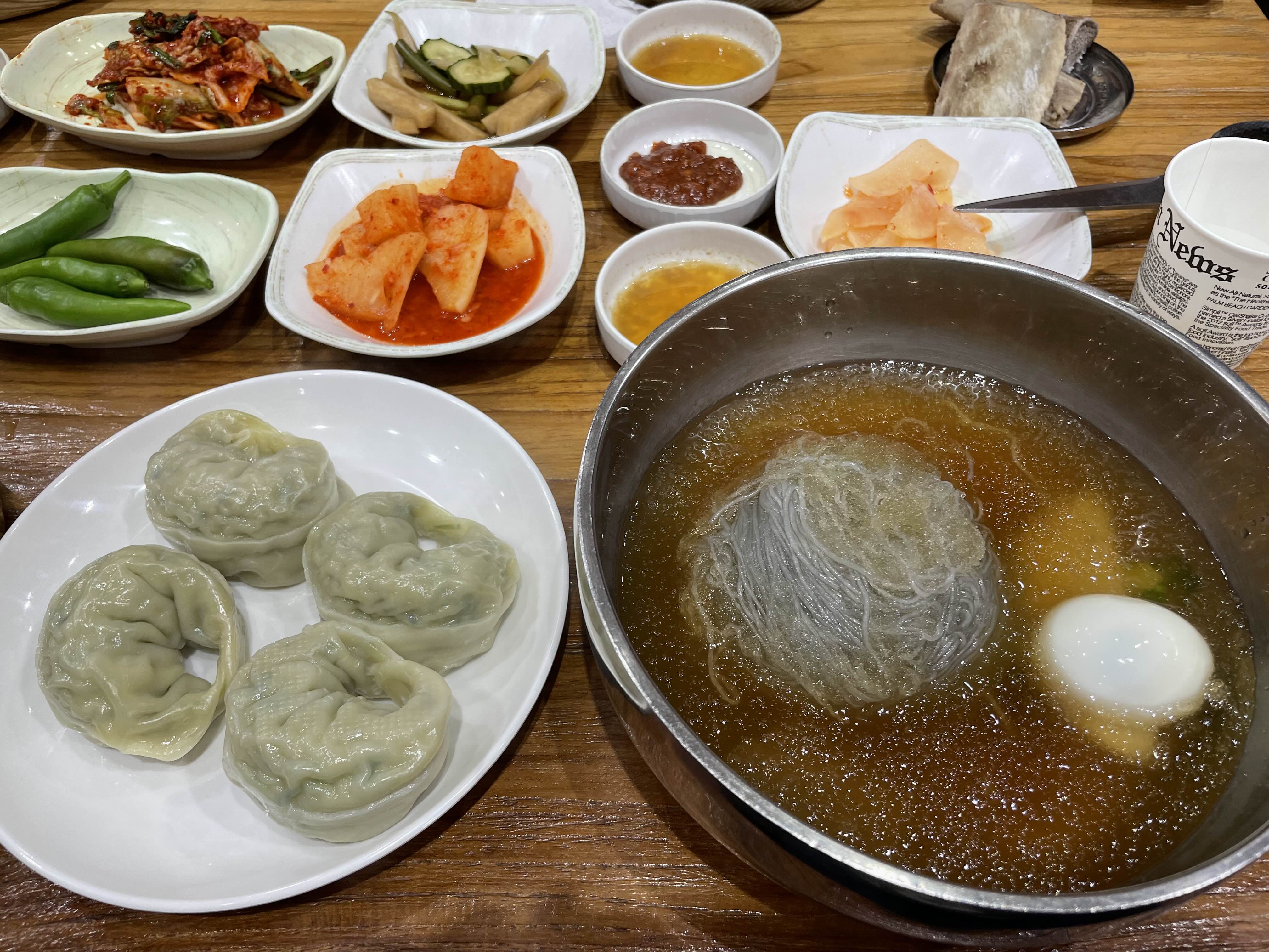 점심은 물냉면과 만두를 먹었다.