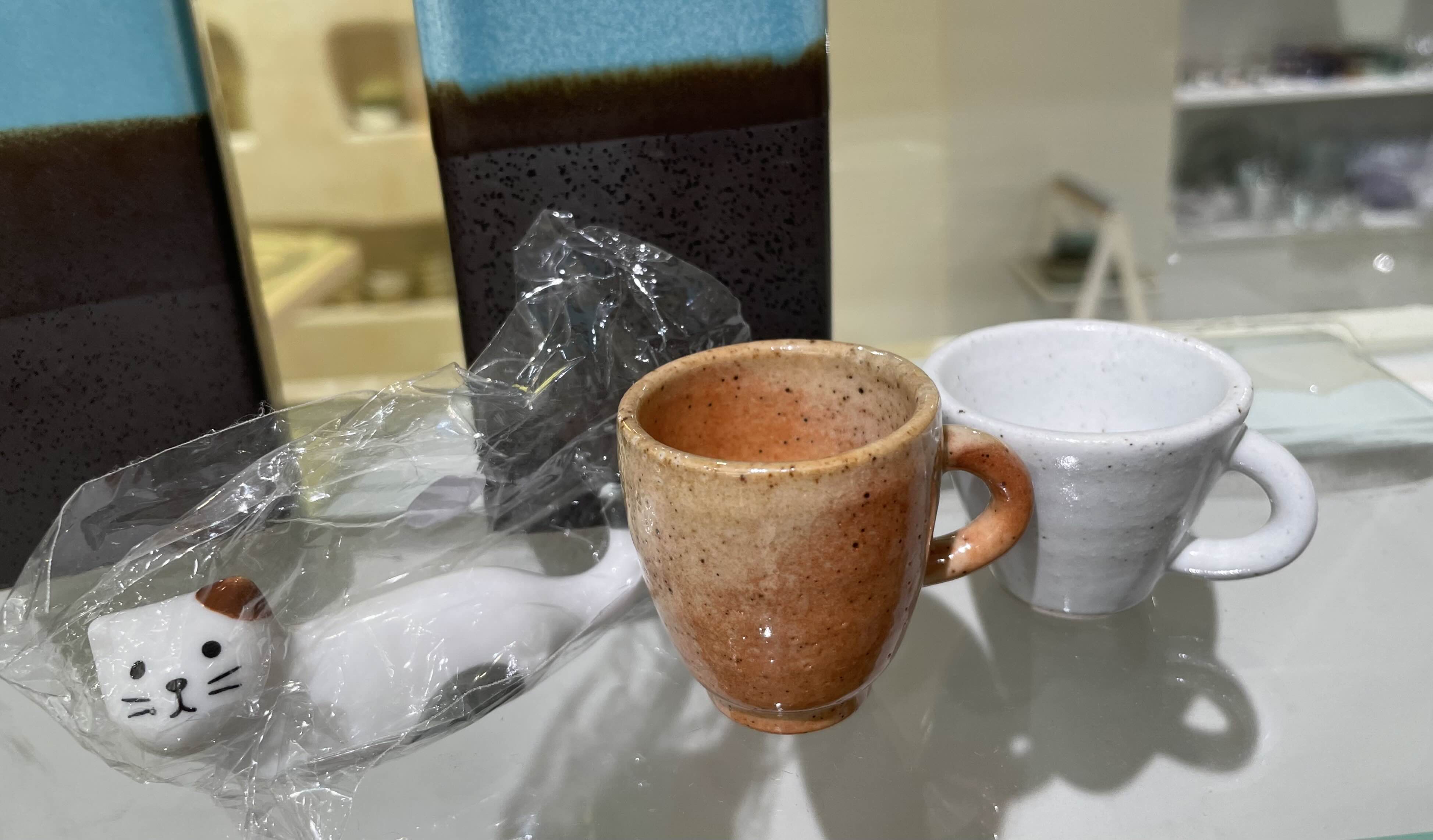 꼭 살 게 있는 것도 아니고 최근 북유럽에서 그릇 여러개 사와 뭔가 또 들이기 부담스러운 상황. 그래도 사고싶어서 고양이 수저받침과 보이차잔 두개를 샀다. 한모금 거리나 될까말까하게 엄청 작은 잔인데, 귀엽다. 원래 보이차잔이 작은 건가?!?!