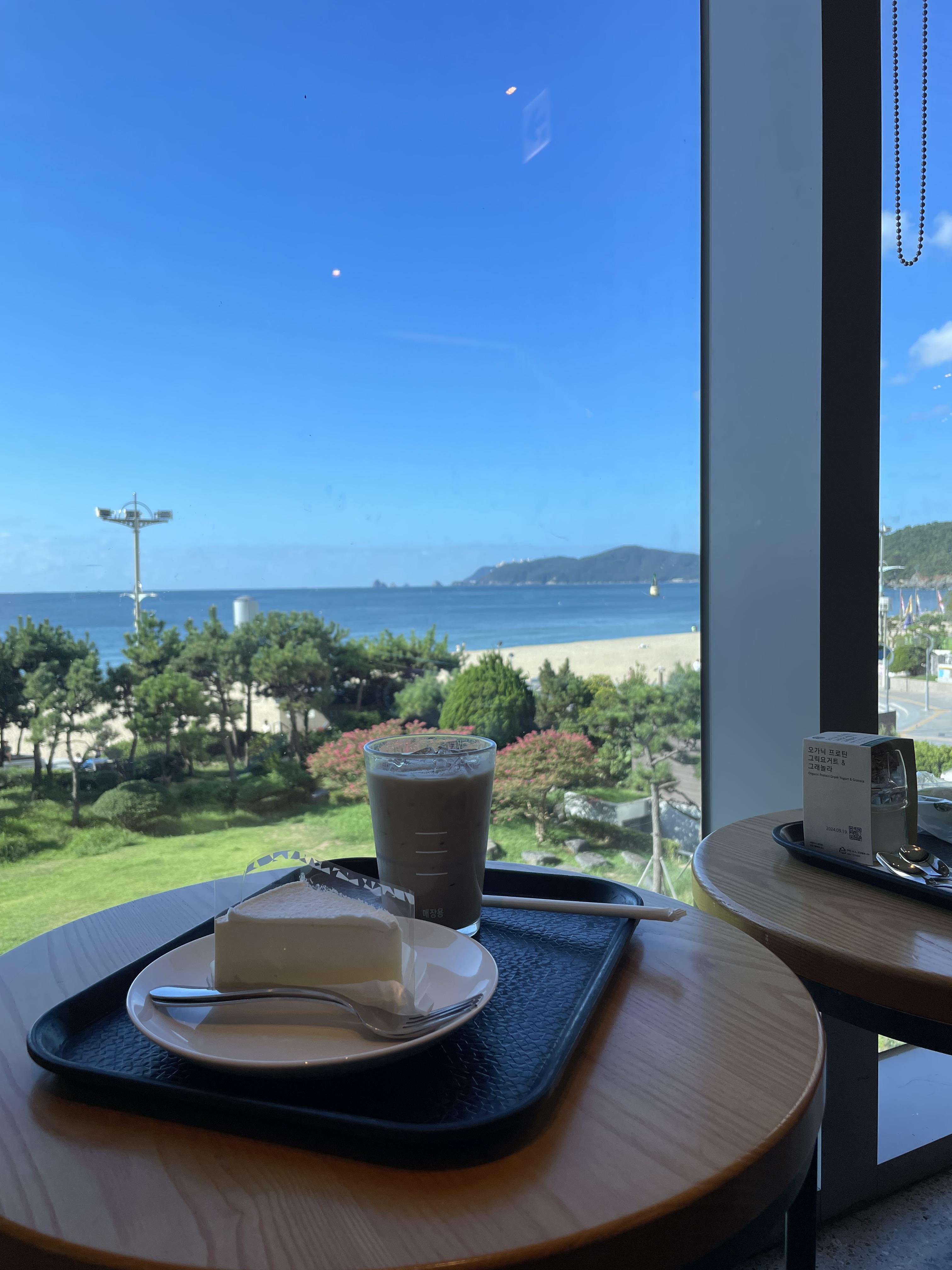그랜드조선 2층 스벅에 가서 케이크로 아침 식사. 지인에게 그랜드조선 스벅 뷰 좋다하니까 회사에서 그랜드조선으로 출장 숙박 잡아준 줄 알던데 우리 회사가 그럴리가…
