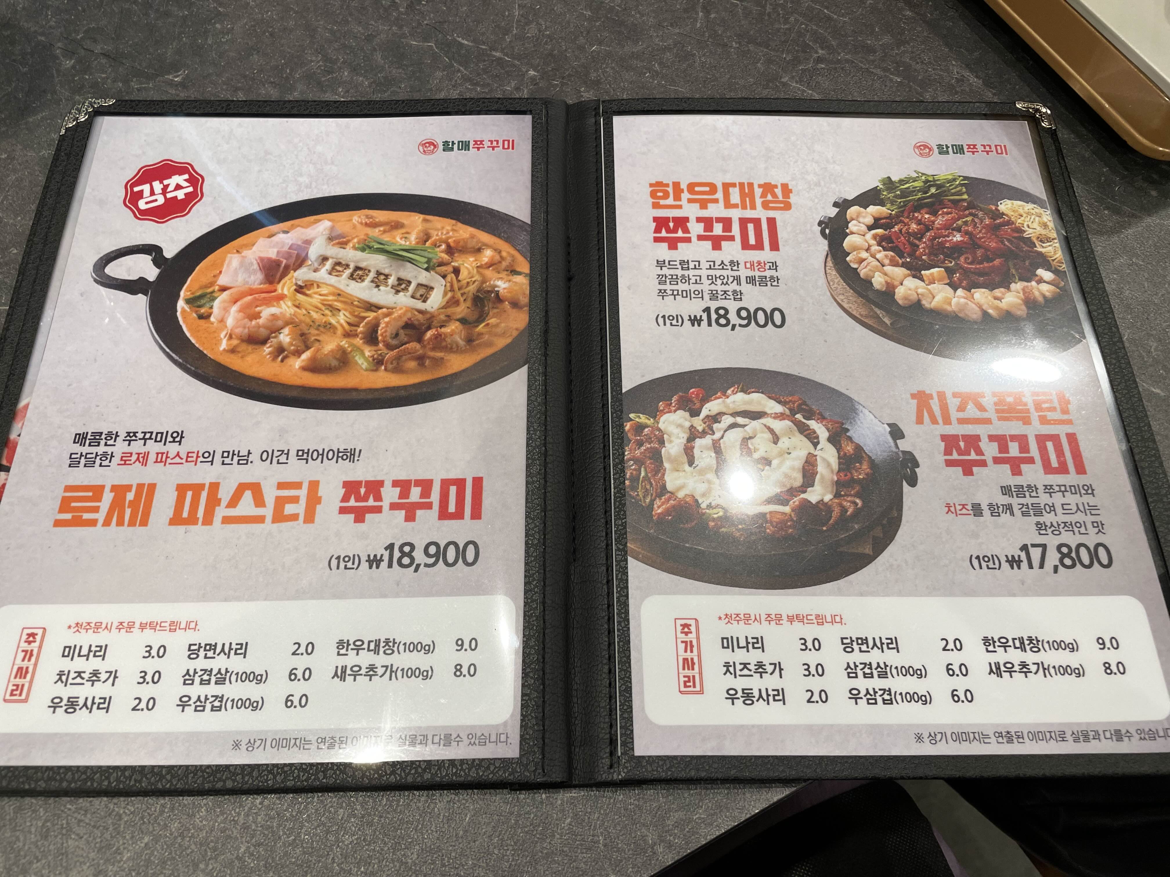 그냥 철판 쭈꾸미 2인분 + 우동 사리를 주문했다.