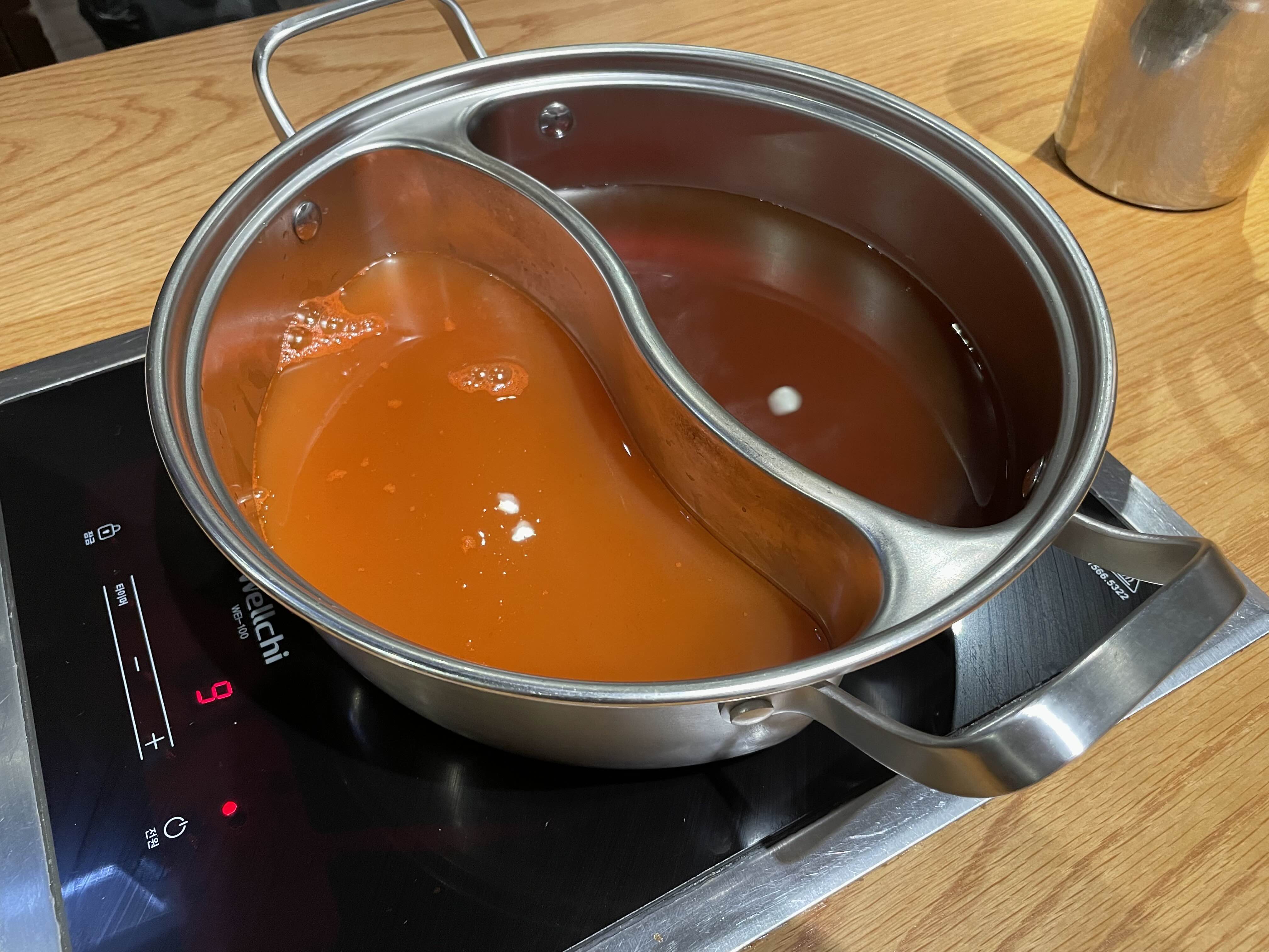 조금 아쉬웠던 점은, 샤브샤브 냄비가 1인용이 아니라는 것. 네 명이 한 테이블에 앉으면 네 명이 한 냄비를 써야한다는 것. 위 사진처럼 분할 냄비를 쓰려면 추가금이 또 있다는 것.