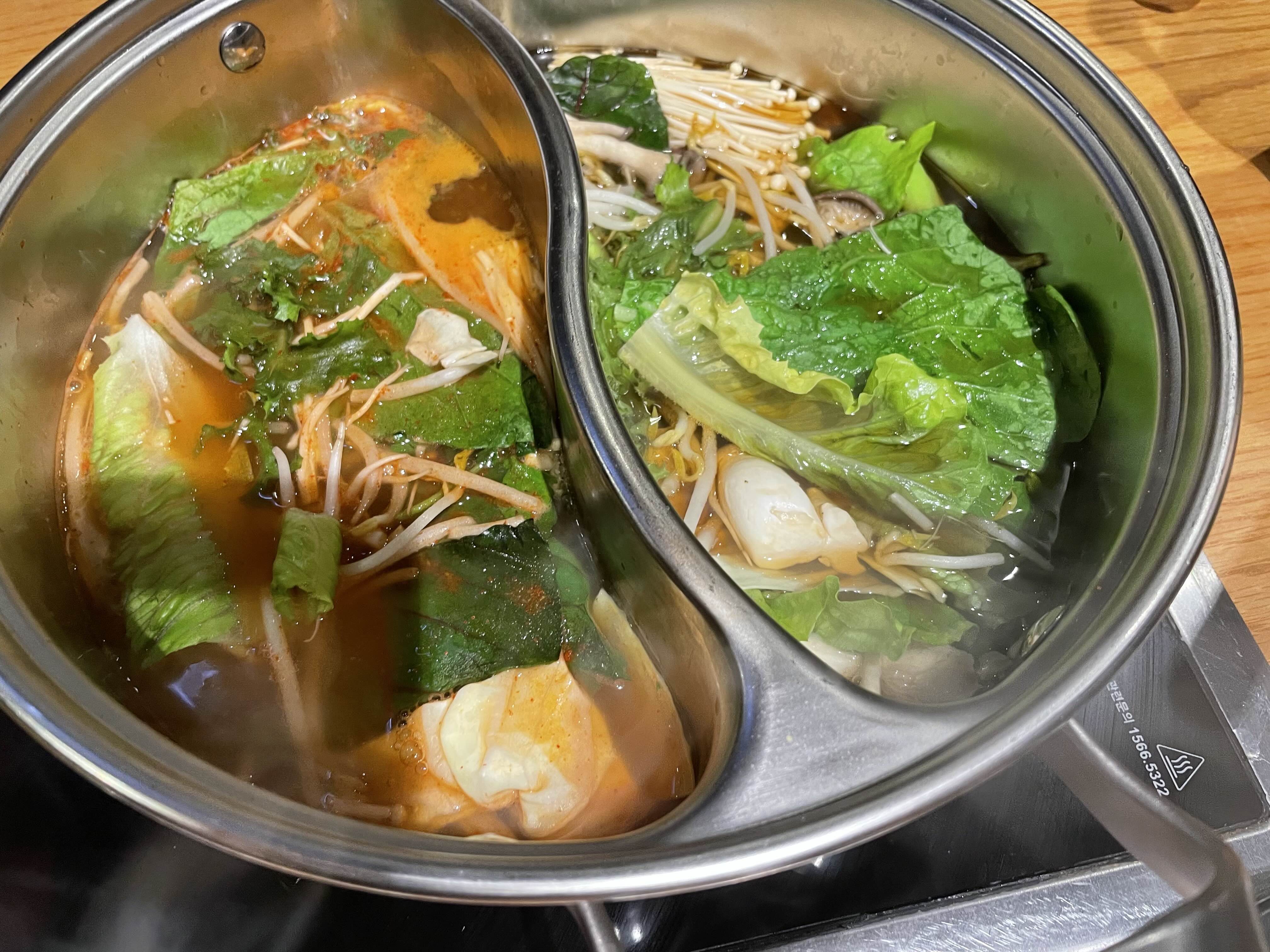 물론 딱히 1인 샤브샤브라고 홍보하지 않는 이상, 우리나라의 일반적인 샤브샤브는 한 테이블에 한 냄비이기는 한데 내가 원하는 속도로, 내가 원하는 재료를 익혀 먹고 싶은 나로써는 이 점이 조금 아쉬웠다.