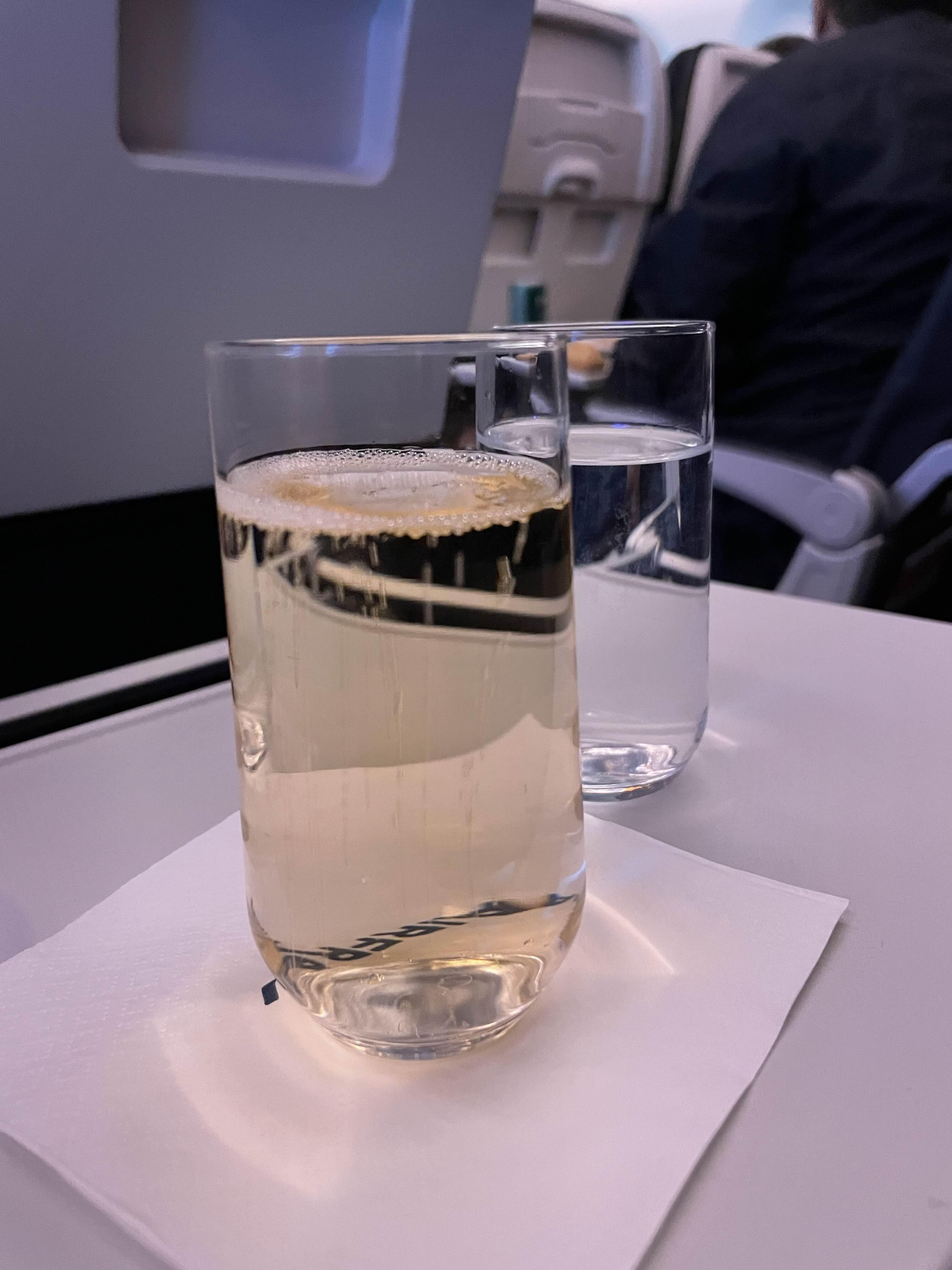 음료로는 샴페인을 주문하자, 바로 앞 갤리로 가서 새 샴페인 병을 가져온 후, 나에게 샴페인 병을 보여주며 이거 괜찮냐고 물어보셨는데 어차피 나는 잘 모르므로ㅎㅎ 좋다고 고개를 끄덕였다. (갑자기 든 궁금증인데 혹시 별로라고 하면 다른 종류의 샴페인을 가져오나? 짧은 구간이라 술 종류가 다양하진 않을 것 같은데ㅎㅎ)