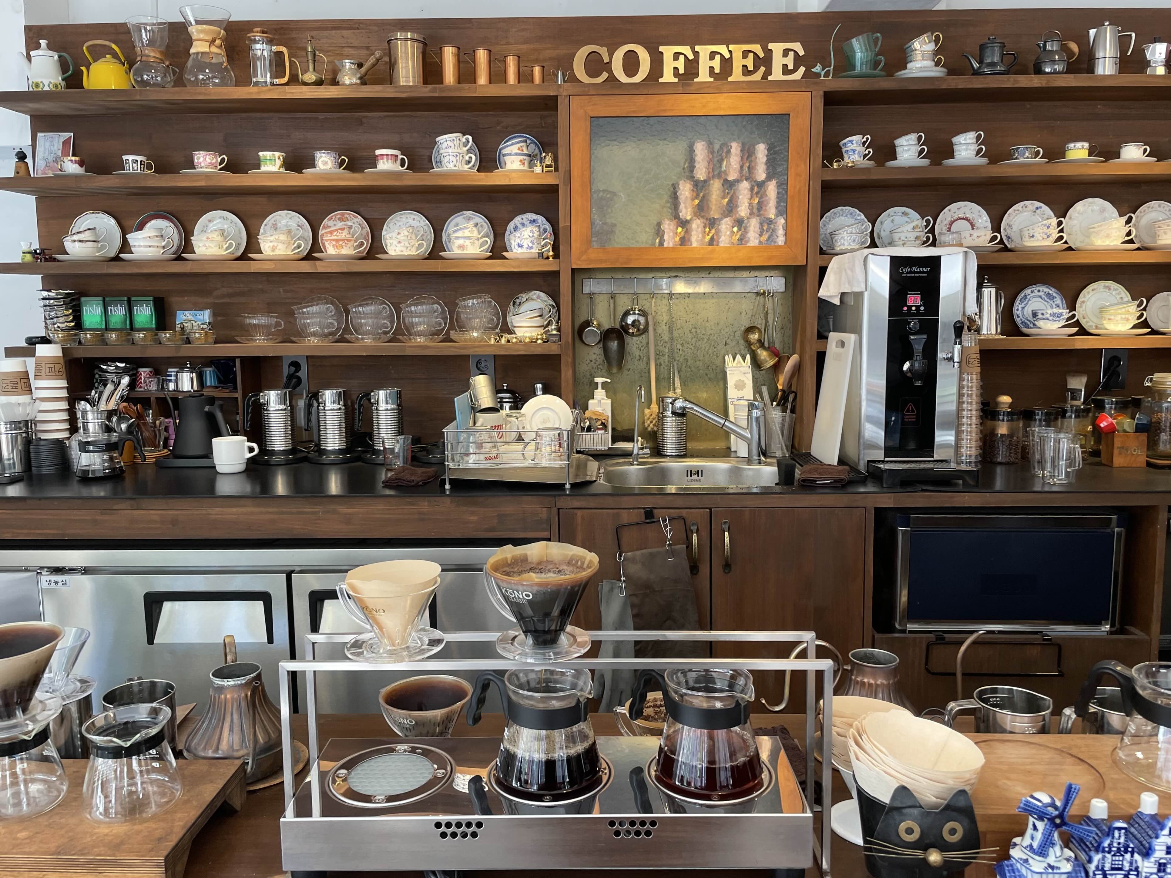 실제로 매장에 들어가니까 예쁜 찻잔이 가득해서 설레였다. 우리나라보다는 일본에 더 많이 보이는 유형의 카페.