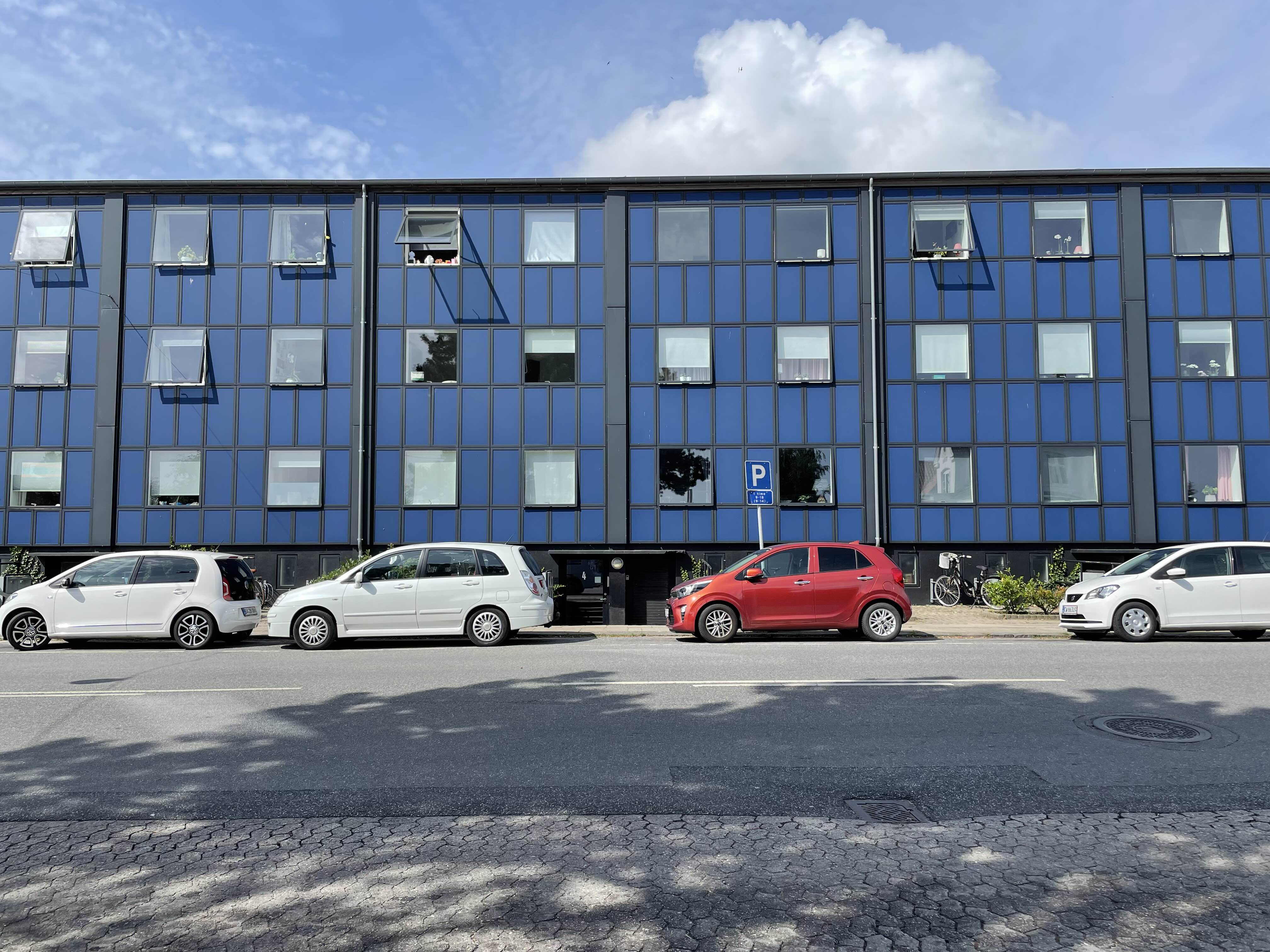 정류장 맞은 편 풍경. 드라우외어 올드타운을 벗어나면 또 바로 현대적인 건물이 있다. 이 파란 건물은 주거용 건물이었는데, 여러모로 네덜란드와 비슷한 느낌 +_+