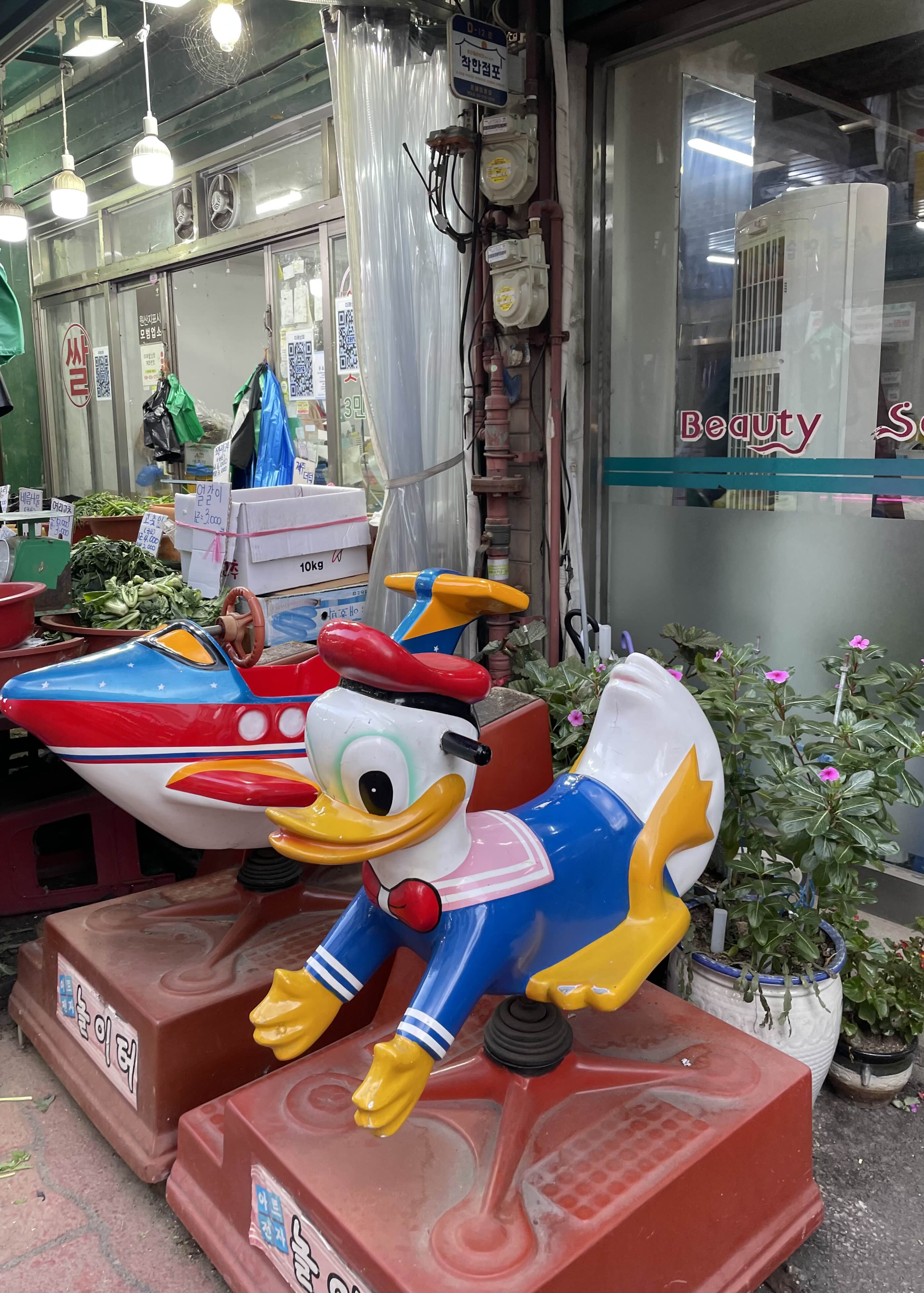 미용실 앞의 놀이기구들