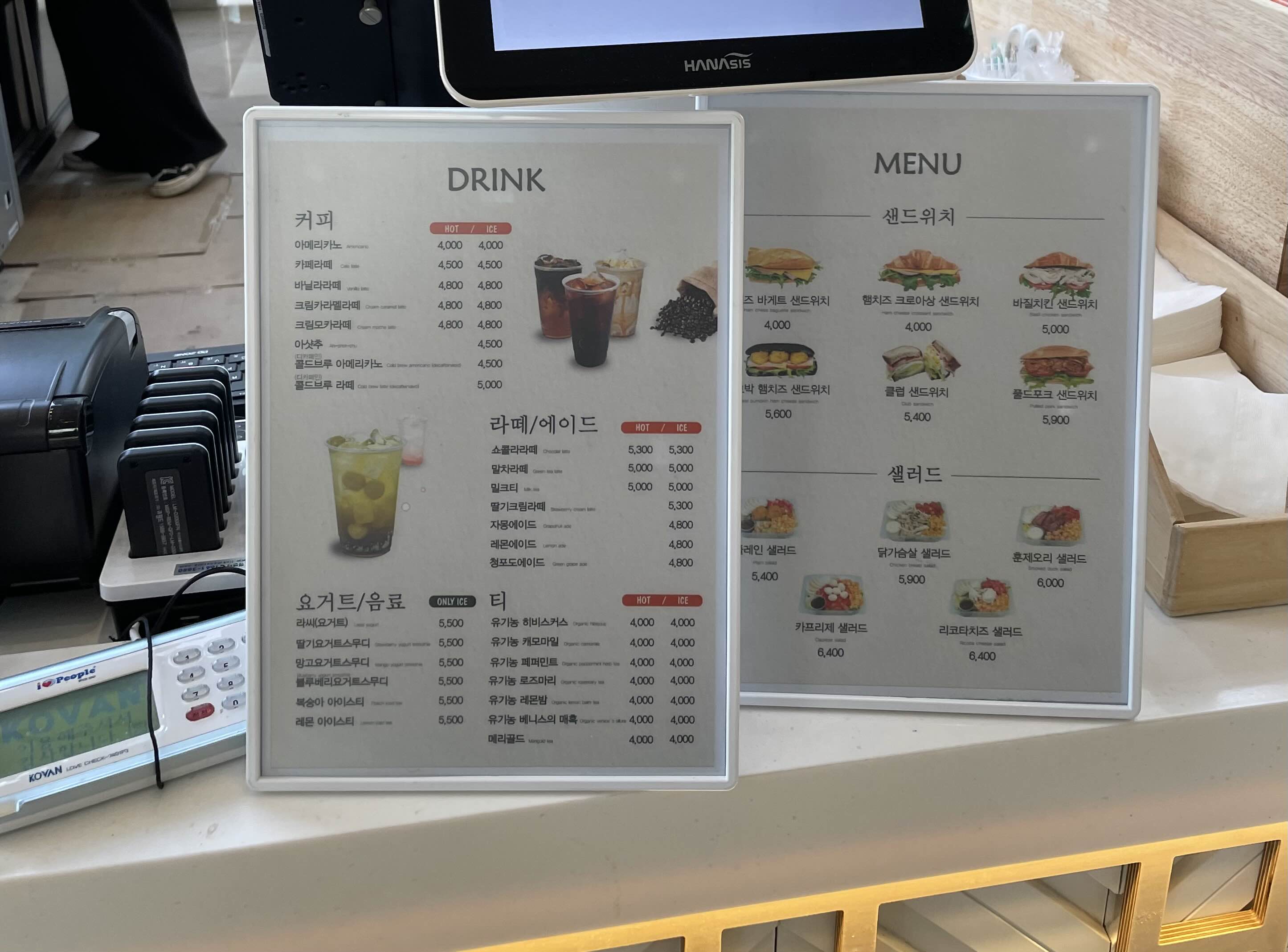 오히려 테이블비의 크로아상 샌드위치, 샐러드 같은 건 저렴한 편이구, 소세지빵도 2천원이었는데 유독 뀐 아망이 비싸서
