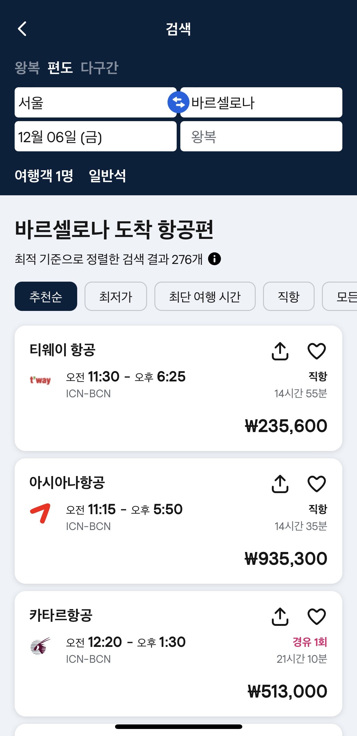 요즘 티웨이 항공 유럽행 특가가 참 자주 뜬다. 나는 장거리 이코노미는 탈 수 없으므로 그림의 떡이지만, 그래도 인천-바르셀로나 편도가 23.6만원이면 그냥 미친 척하고 타야되는 게 아닌가 싶기도 하다.