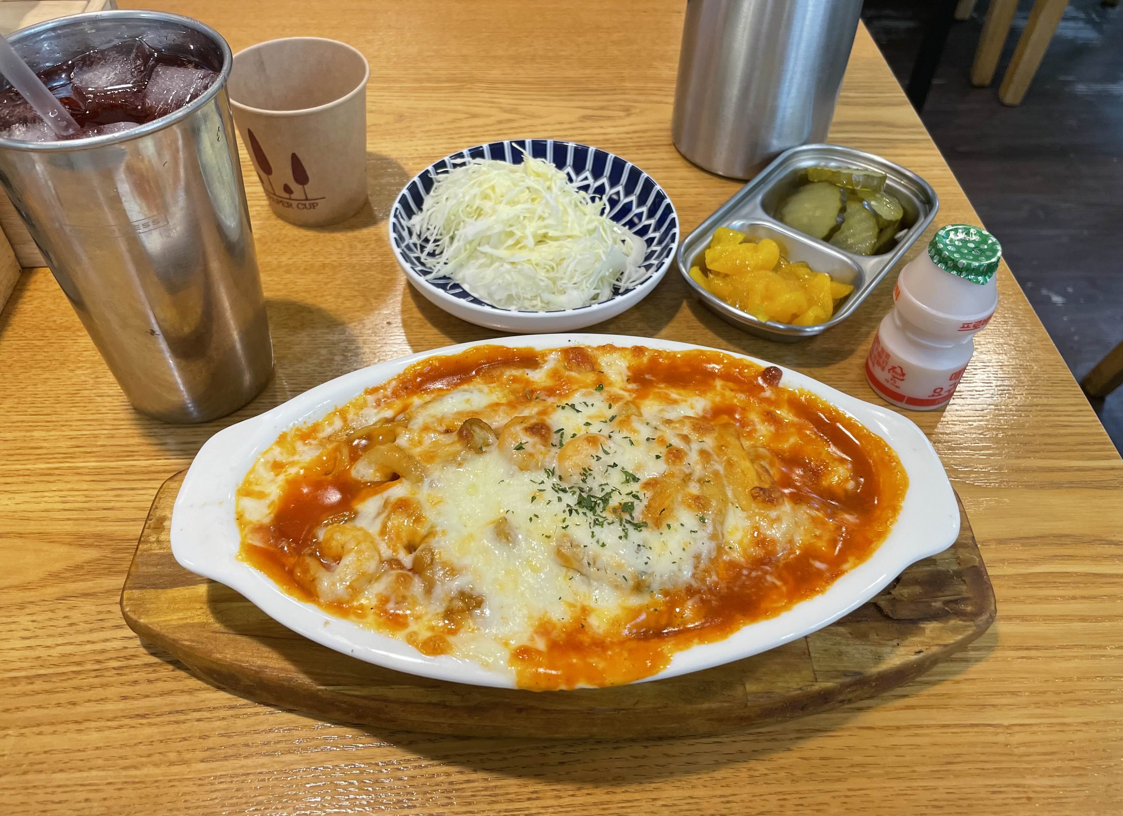 해물떡그라탕이랑 체리에이드를 먹었다.