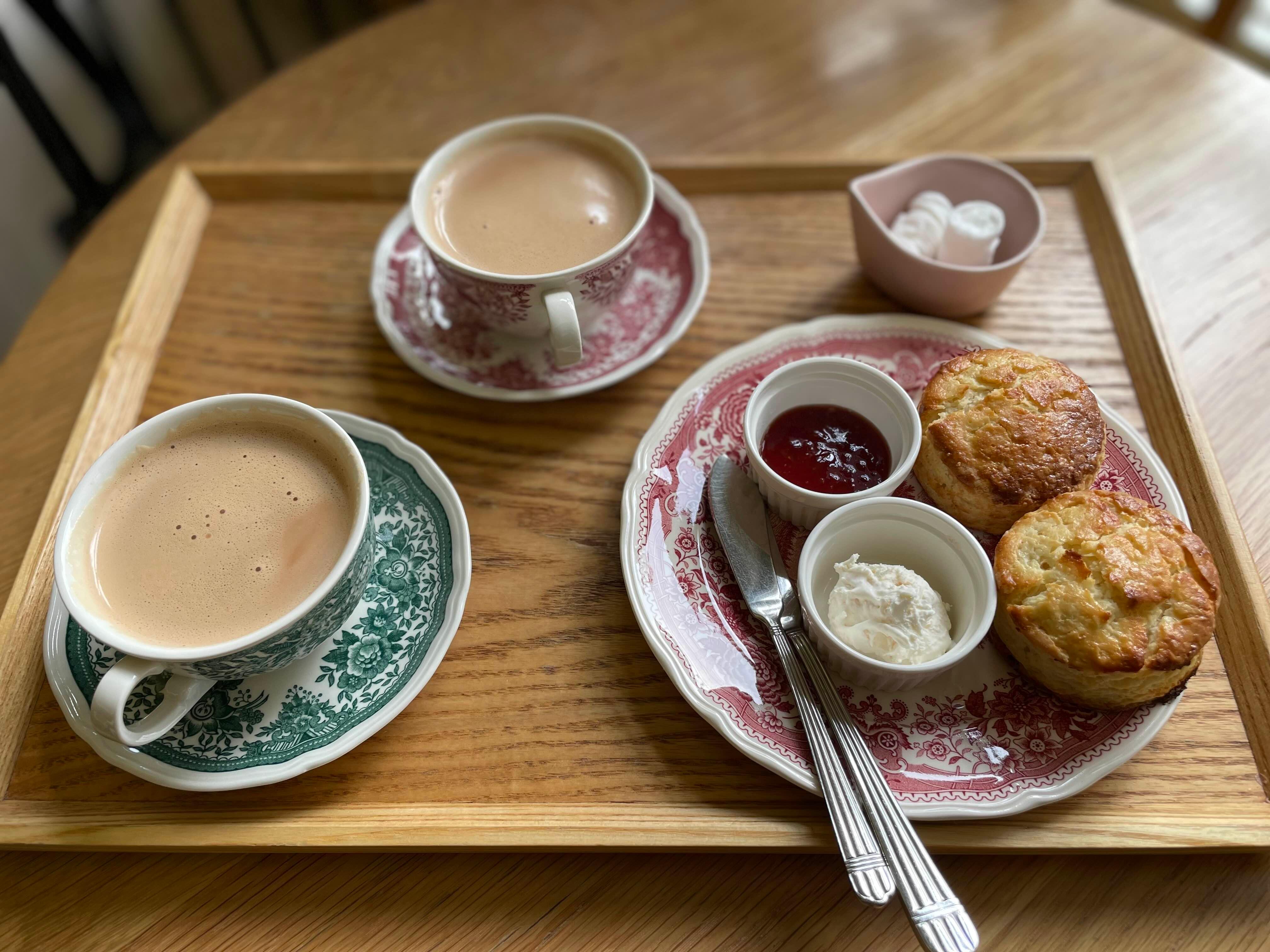 사장님이 가져다주신 정원 밀크티 2잔과 플레인 스콘
