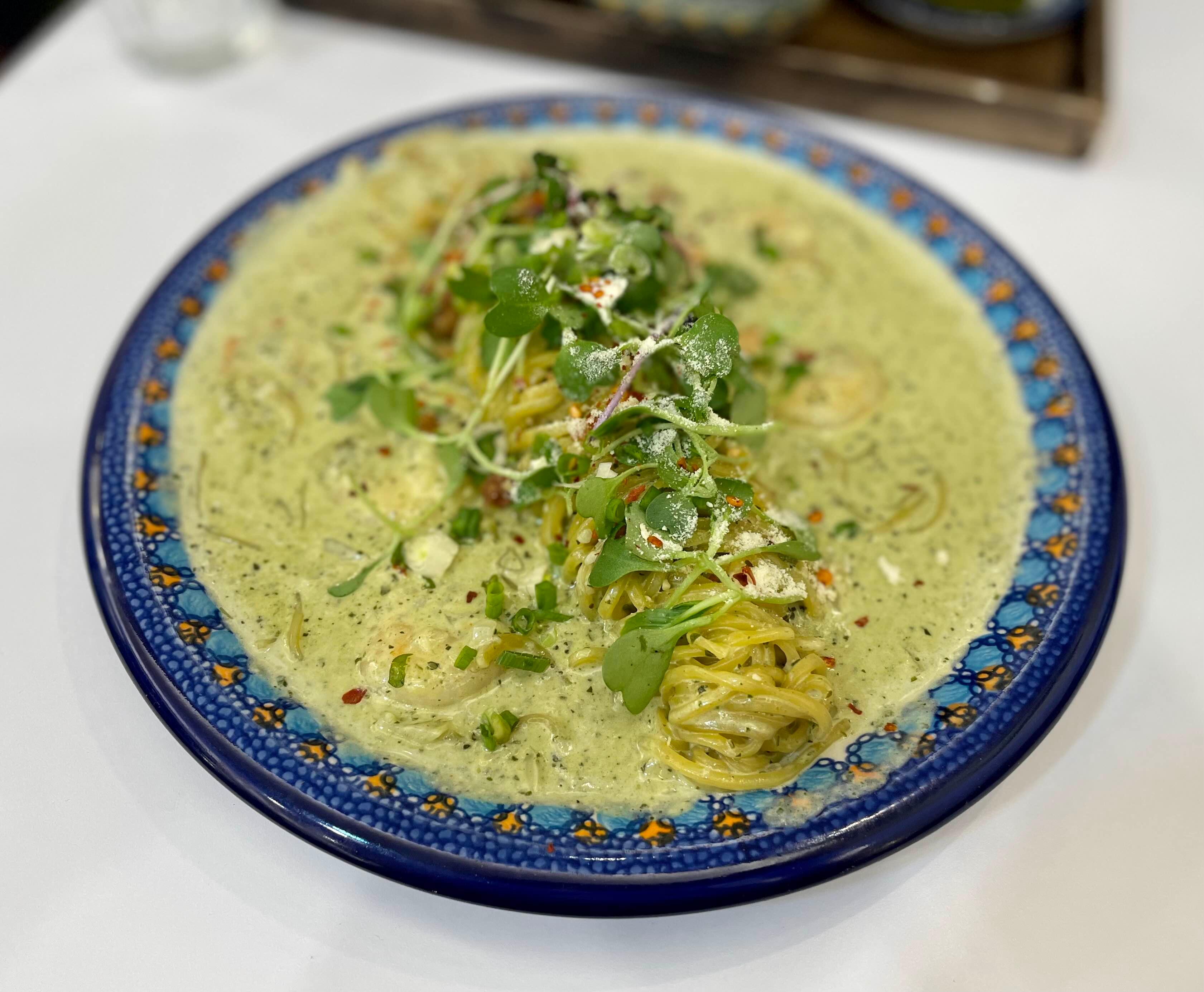 내가 주문한 바질크림 새우파스타 (₩15,300)
