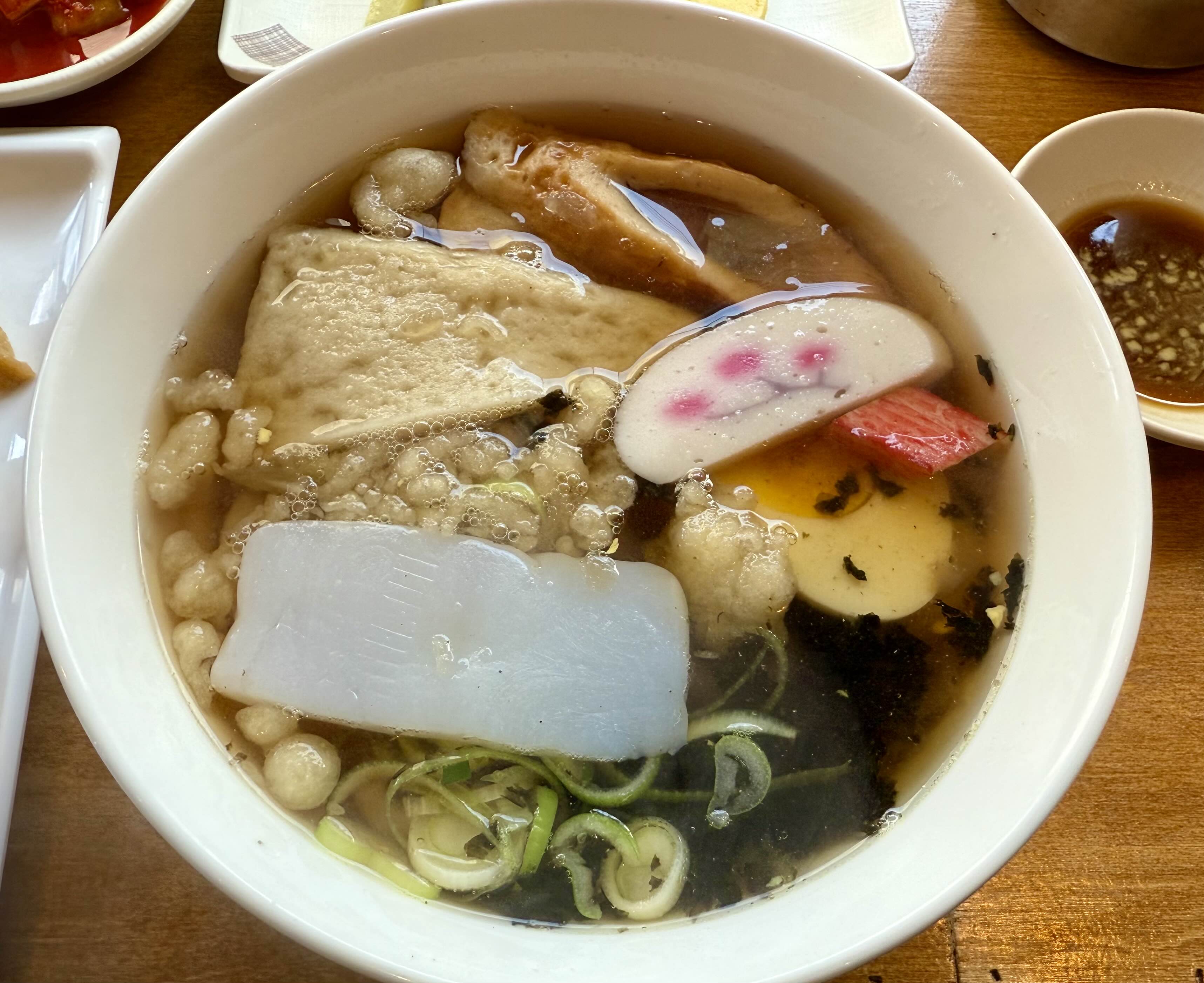 오뎅우동의 오뎅을 찍어먹는 용도일까 싶어서, 처음엔 그냥 먹었던 오뎅을 간장에 찍어먹으니 더 맛있었다. 혹시 정확한 용도를 아시는 분이 계시면 알려주세요 ^^