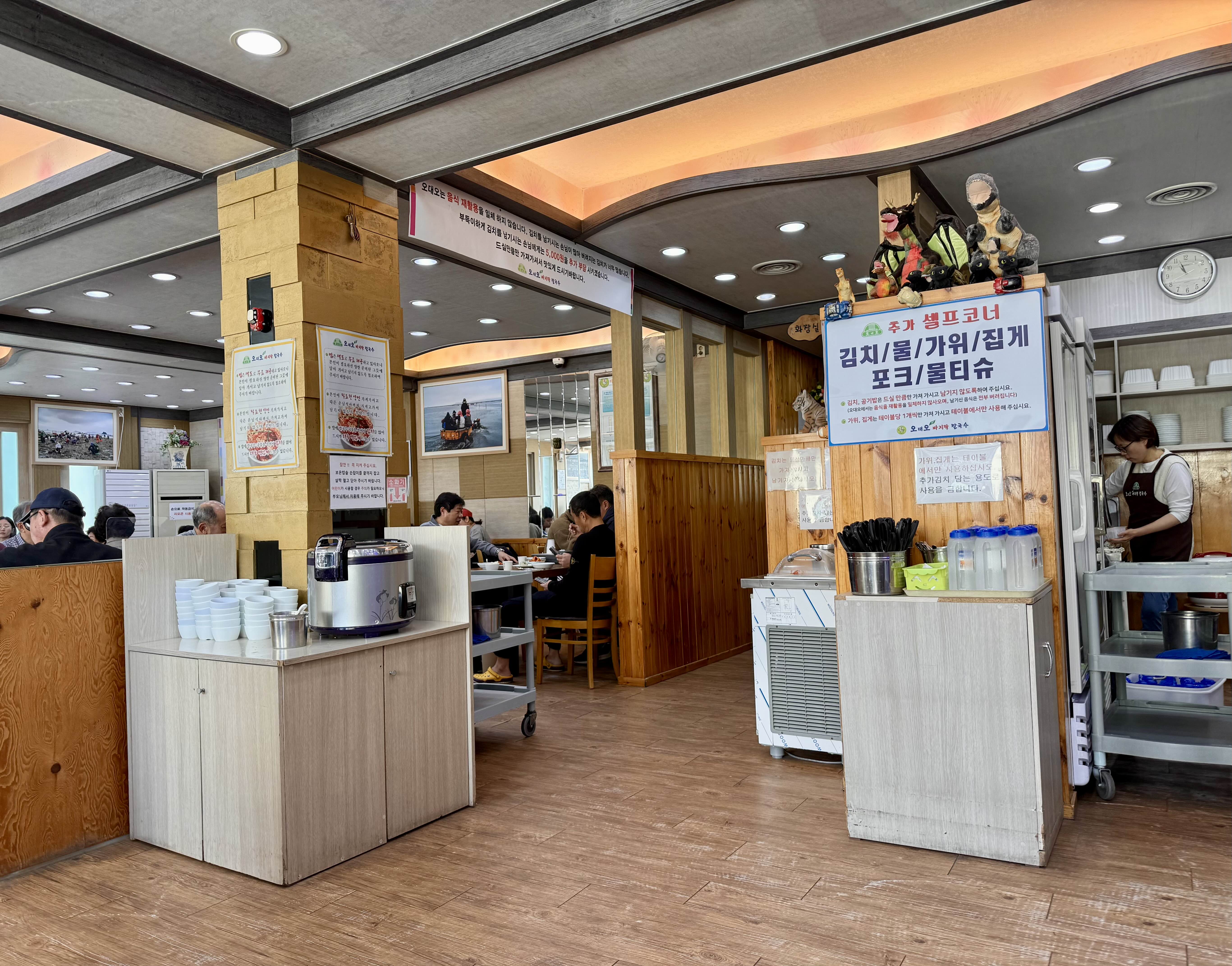 사장님도 바쁜 와중에 우리 테이블로 와서 “공기밥도 저 뒤에 있으니 가져다 드세요”라고 신경써주실 만큼 친절하셨는데, 다만! 우리 자리가 부엌 쪽이랑 가까워 계속 들리는 주방의 소음 + 입구 쪽 자리라 입장하고 대기하는 사람들의 번잡함 때문에 진짜 정신이 하나도 없었다. 내가 소음이나 주변 환경에 예민한 편이라서 - 복잡하고 좁고 불편한 “완전 맛집”보다는 여유로운 식사를 백배쯤 선호함 ㅎㅎ - 이 곳에 또 갈지는 미지수. 그러나 그만큼 이 오대오바지락칼국수가 맛있고 양도 많고, 대기줄도 길었다는 이야기 :)