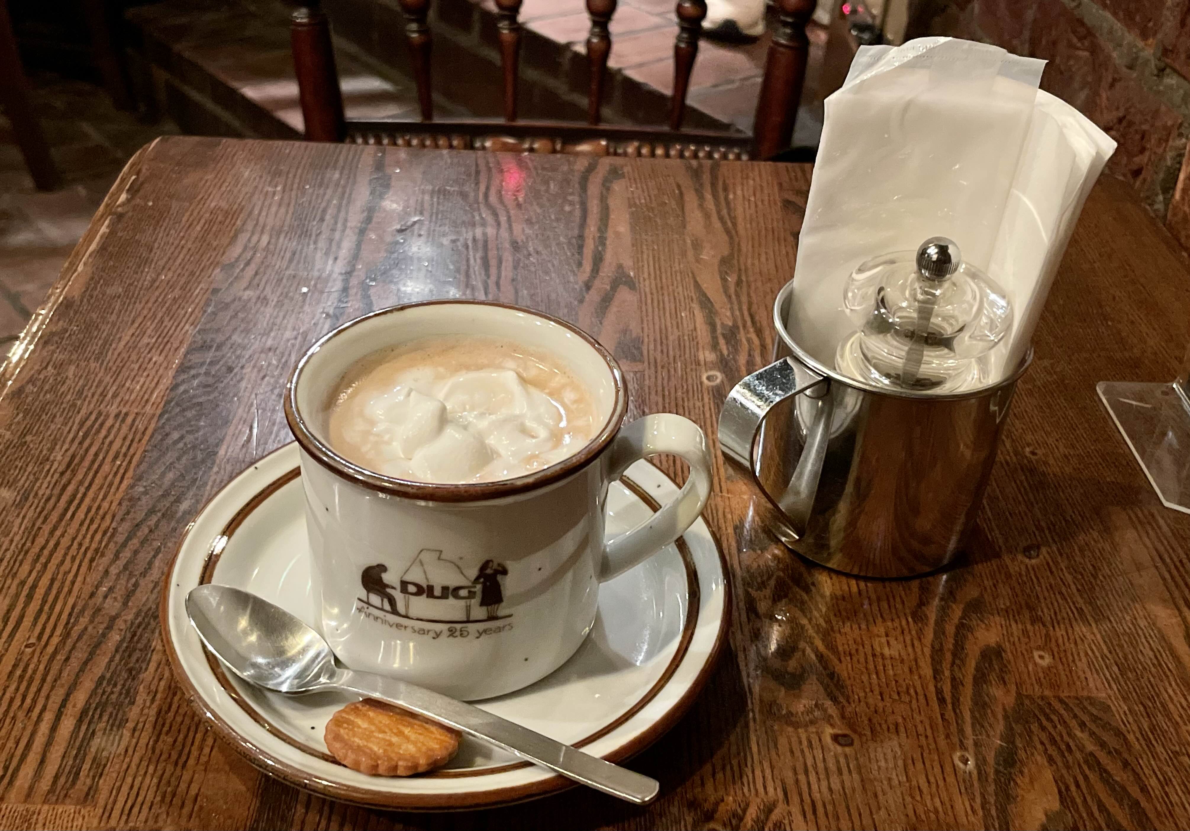 커피는 12월말 도쿄의 차가운 바람에 지친 몸을 따듯하게 녹여주었다. DUG 로고가 새겨진 커피잔이 마음에 들었는데 따로 판매는 하지 않는 것 같았다. 컵에 26주년 기념이라 새겨진 것을 보니 이 컵도 90년대에 만들어진 것? 그러기에는 또 그 정도로 사용감이 느껴지지는 않는데...