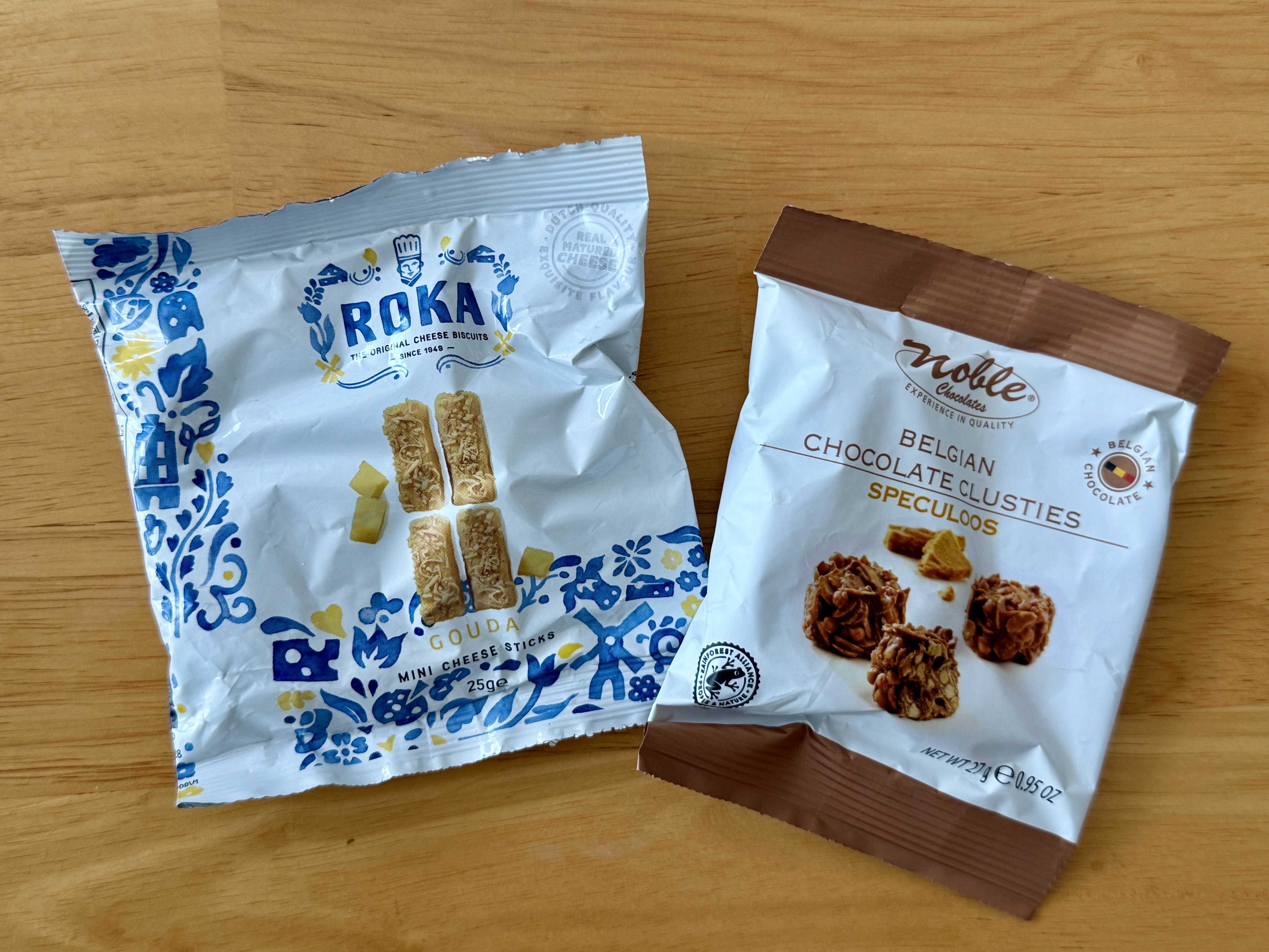 나는 장거리 비행의 간식 코너를 매우 좋아하는데 KLM 에서 기절하다시피 잠이 들어 (밤 12시가 넘은 시간 + 여행의 여독 + 라운지에서 마신 술) 내가 깨었을때는 갤리의 간식 코너는 이미 다 정리된 뒤였지만, 마침 갤리에 있던 한국인 승무원분께서 간식 드릴까요? 하면서 서랍 같은 곳을 뒤져서 꺼내주신 간식이었다! 센스 무엇!
