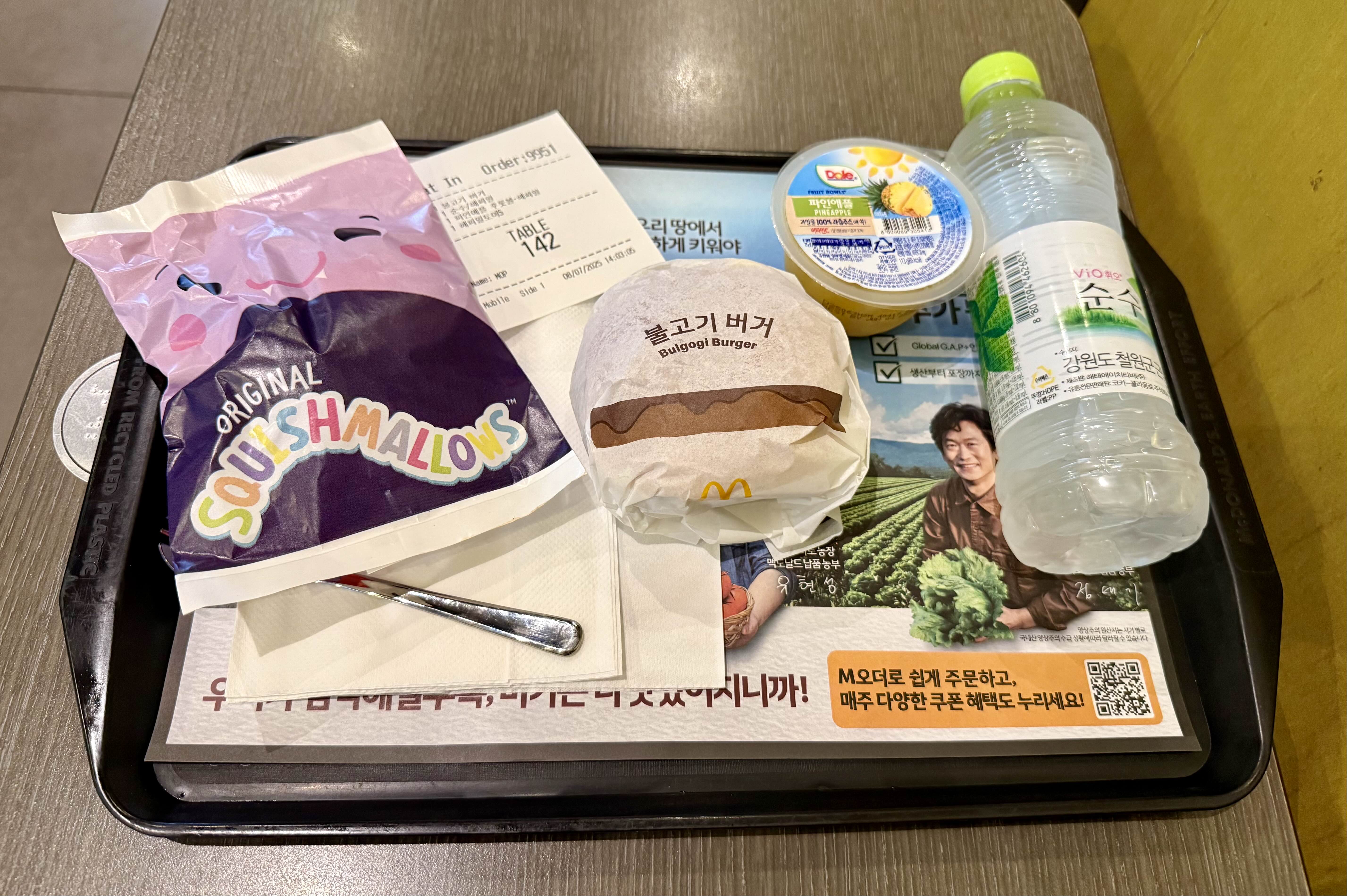 불고기버거, 파인애플, 생수의 다소 재미없는 조합이다 ㅎㅎ