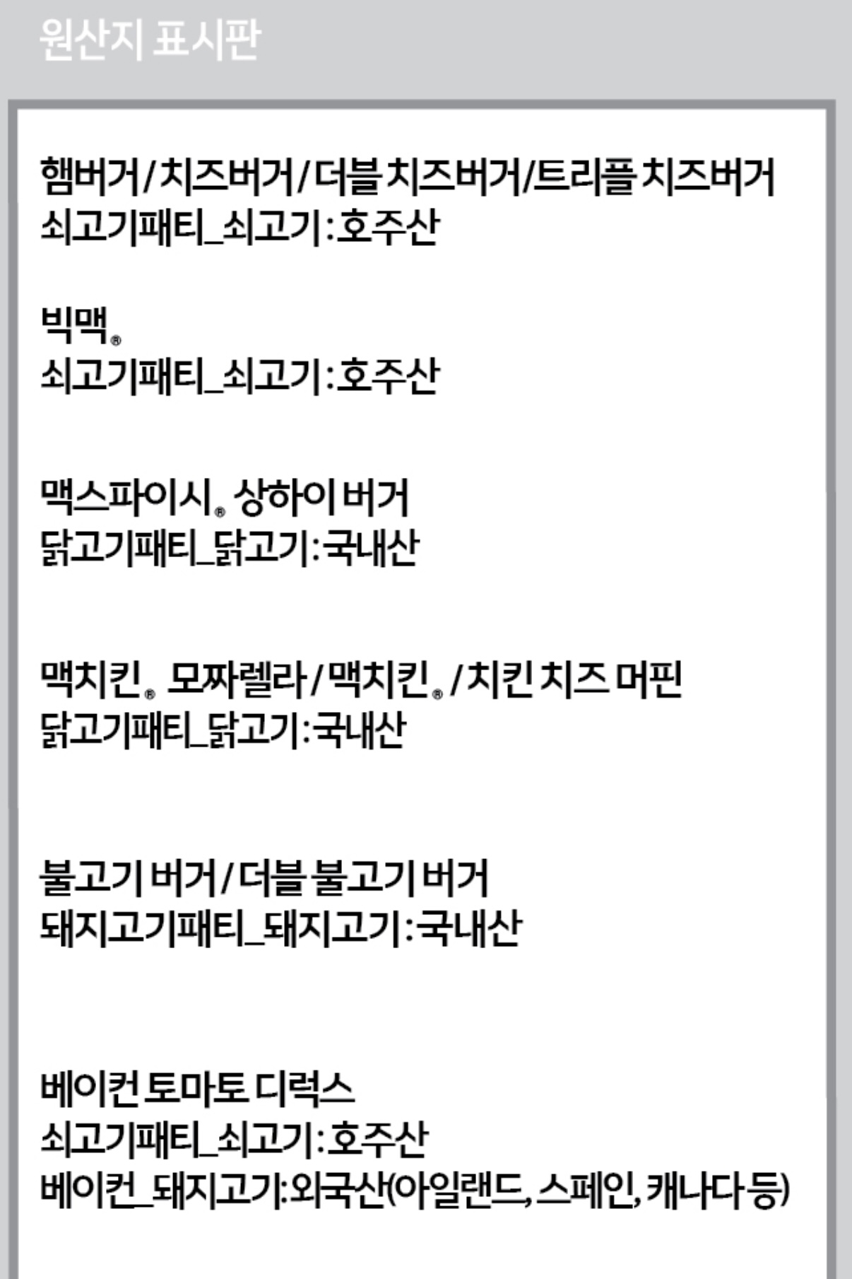 소고기알러지를 진단 받은 이후로 패티의 성분을 살핀다.