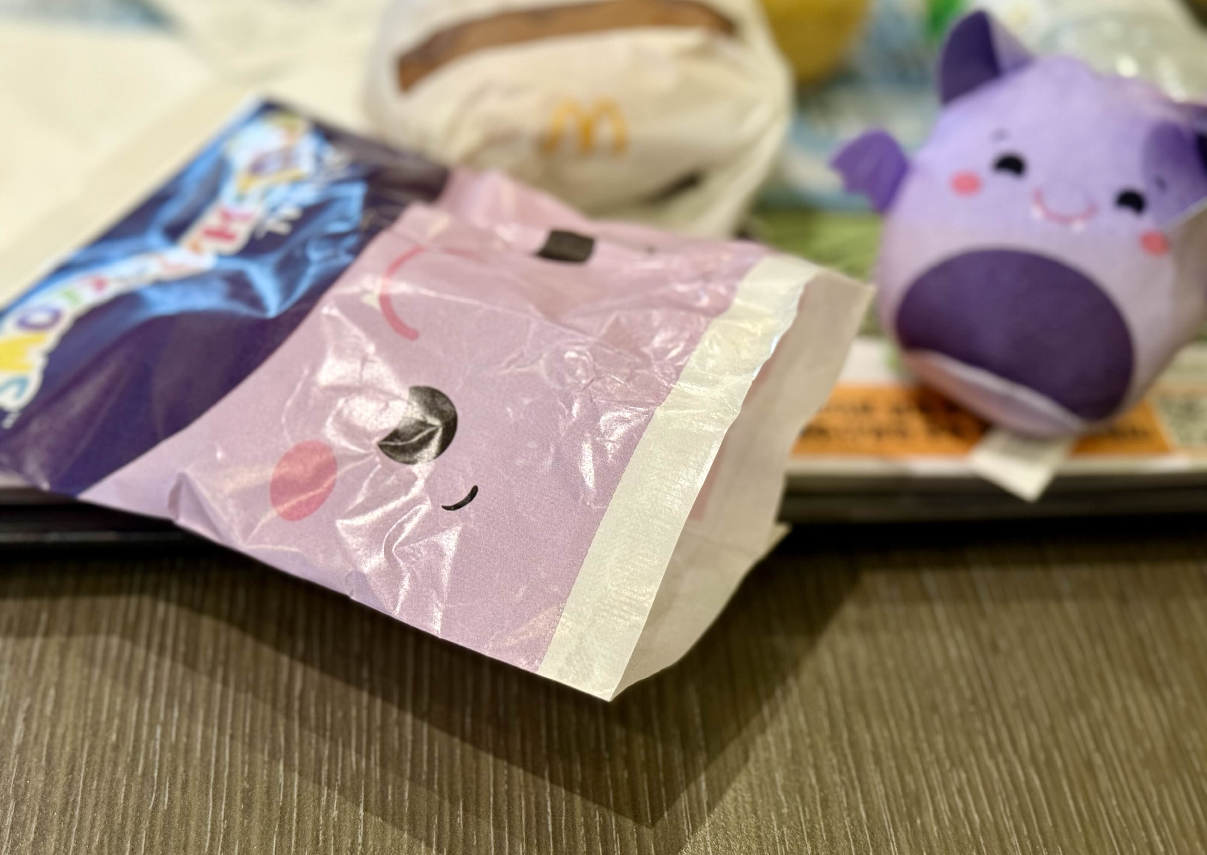 해피밀 포장지가 종이인 건 이번이 처음인데, 아예 바뀐건가?! 스퀴시멜로우 시리즈만 그런건가