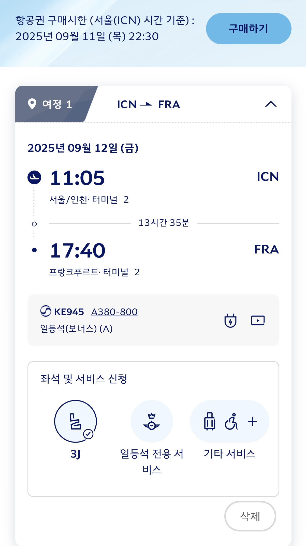 내일 출발하는 프랑크푸르트 일등석 마일리지표가 풀렸다.