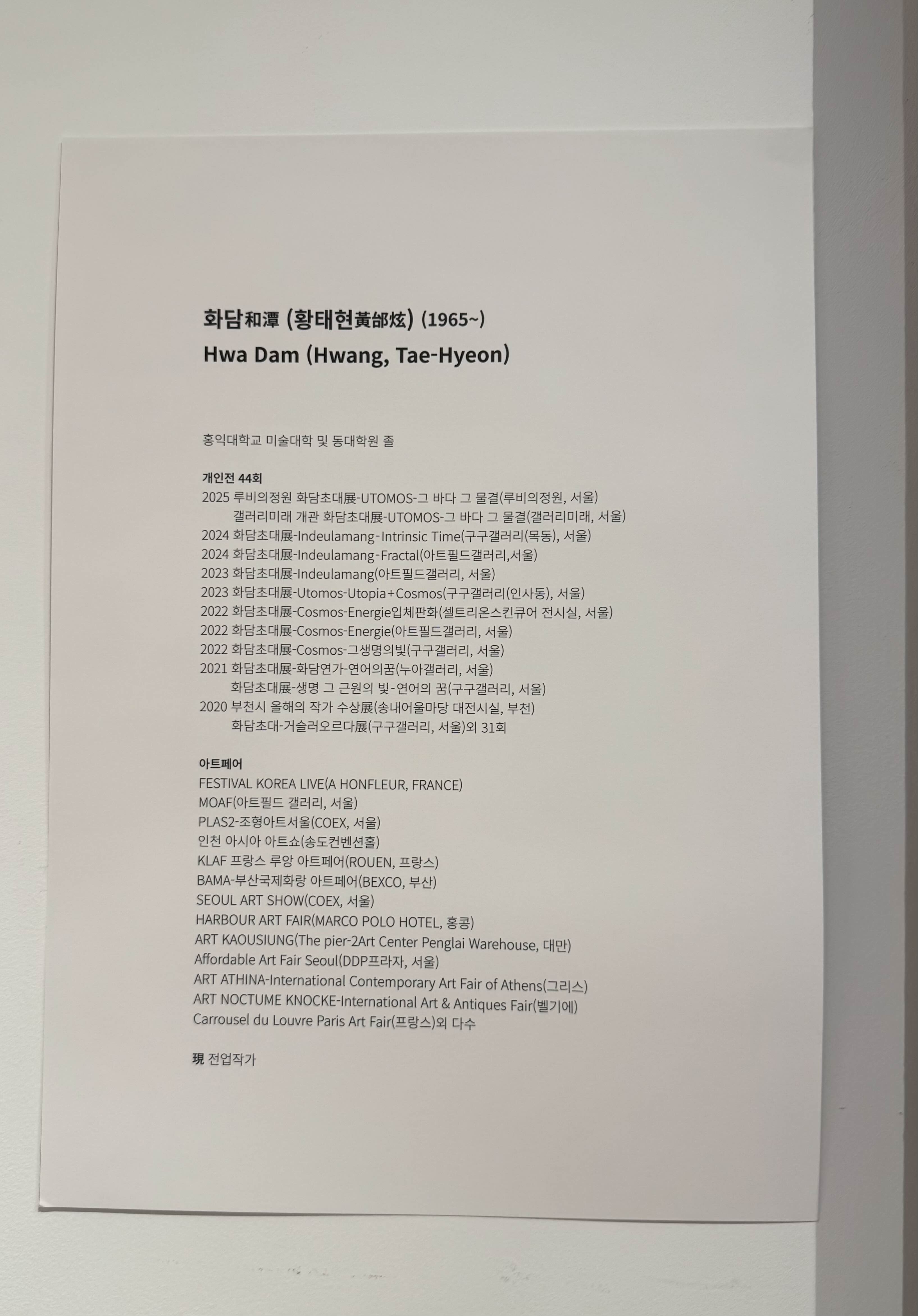 우리가 갔을때는 화담 황태현님의 전시회가 진행 중이었는데