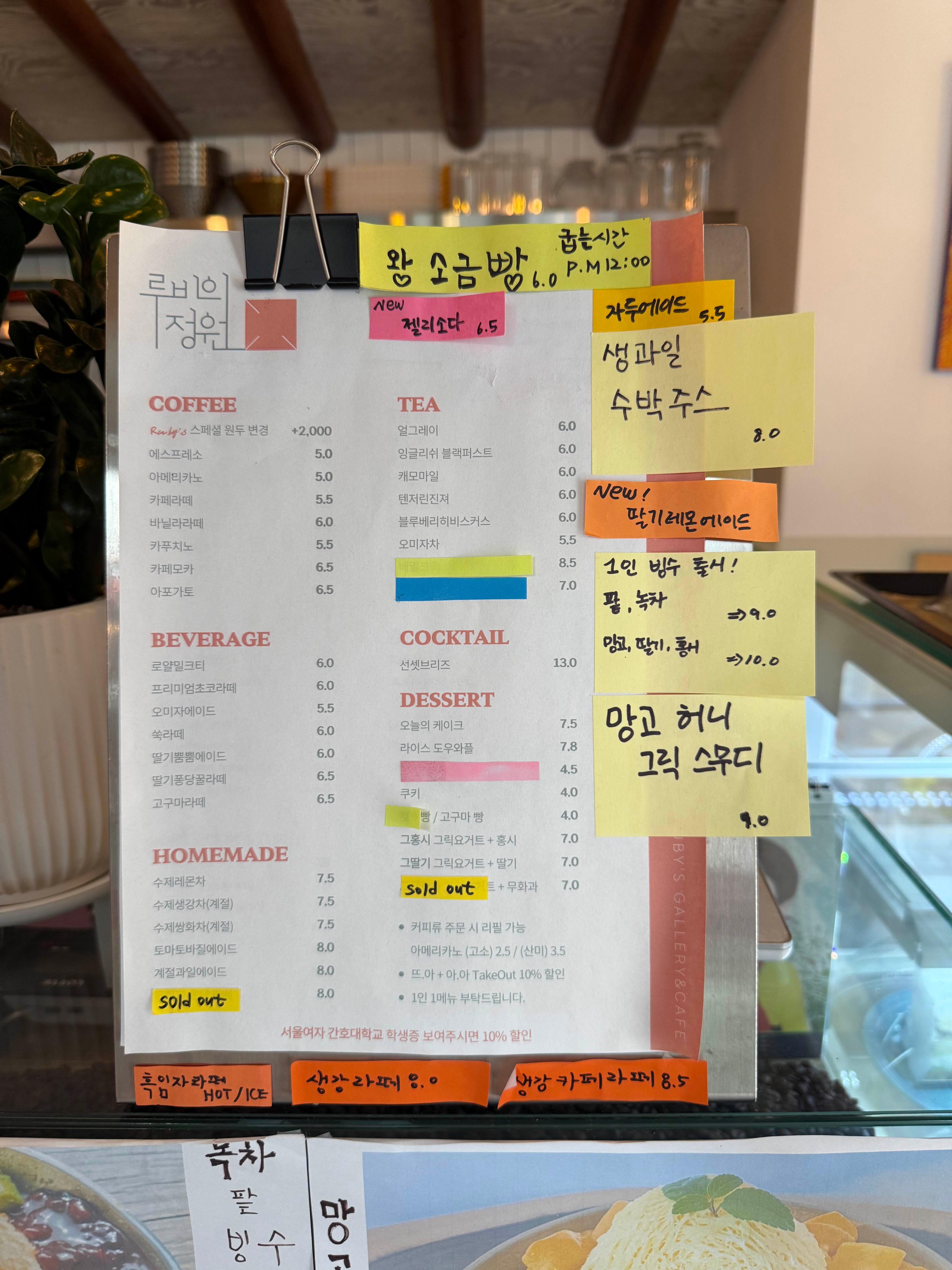 루비의 정원 메뉴판