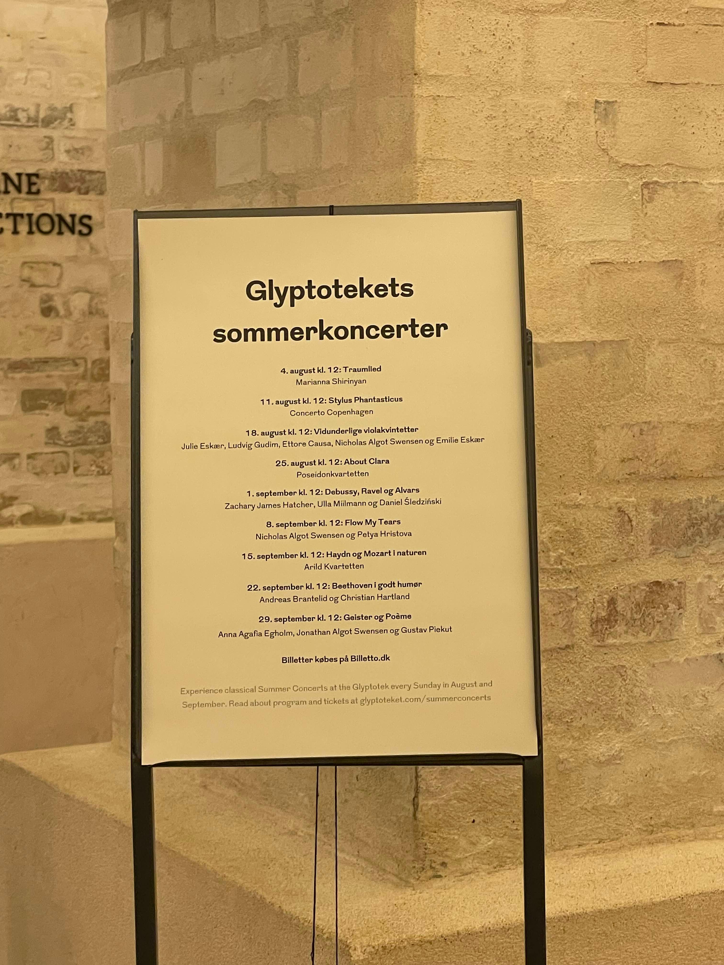 코펜하겐 카드로 입장을 하기 위해선 일단 지하 매표소로 가서 교환을 해야 하는데, 줄을 서 있던 내 시선을 잡아 끈 건 글립토테크의 Summer concert. 티켓 교환하며 물어보니 매표소에선 콘서트 표를 살 수 없고 별도 웹사이트에서 예약을 해야 한단다.