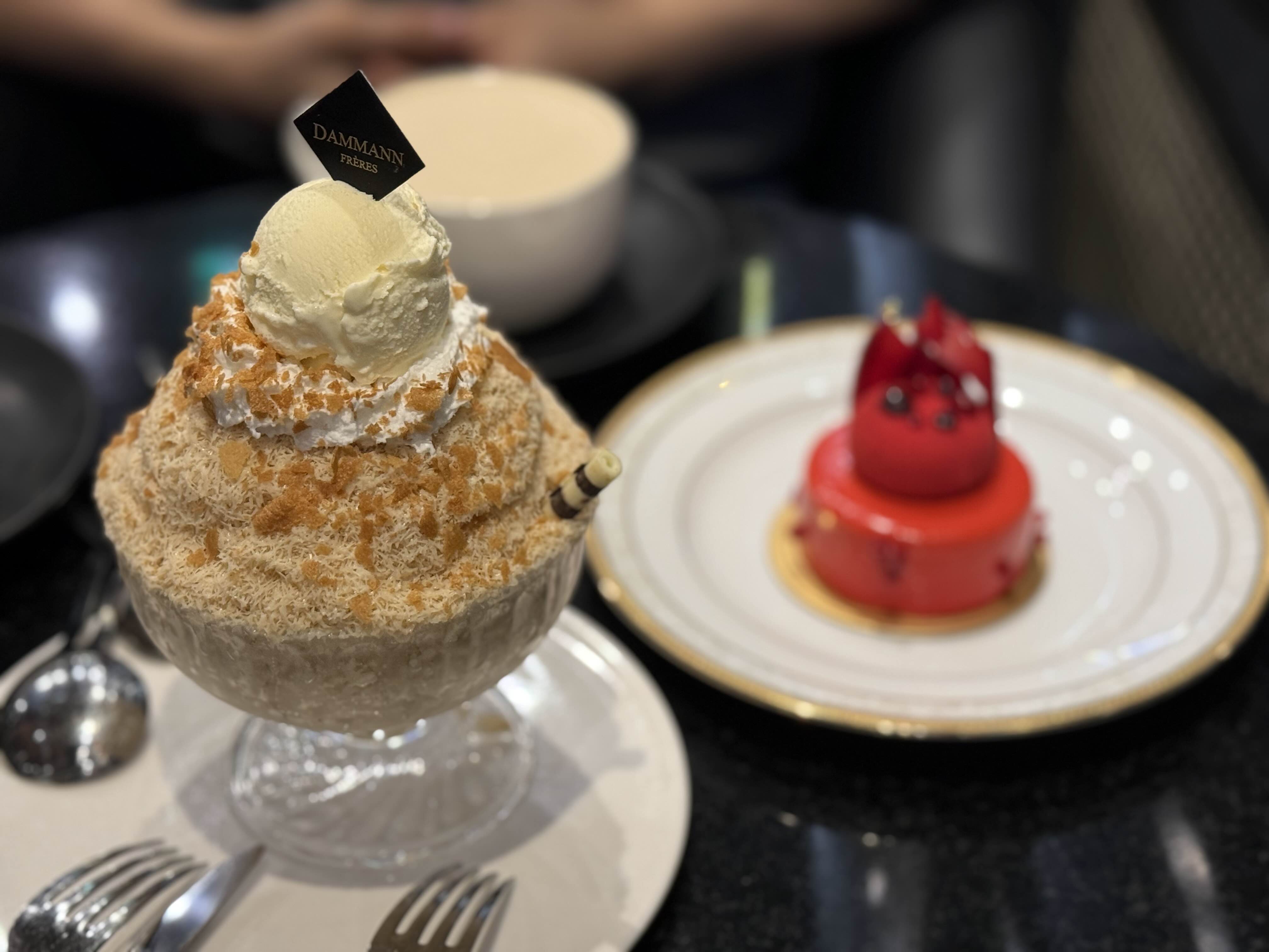 밀크티 빙수는 아쌈, 얼그레이, 쟈뎅 블루 세 개 중에서 고를 수 있었는데, 내가 고른 쟈뎅 블루 밀크티 빙수 - 정식 이름은 쟈흐뎅 블루 프로콩 데떼 - 는 딸기와 루바브 향이 나는 홍차로 만든 밀크티 빙수 얼음에 바닐라 아이스크림과 생크림이 얹어져 있었는데 조화가 정말 절묘했다. 진한 밀크티의 맛과 향은물론, 한국인들의 디저트에 대한 최대 칭찬인 "많이 달지 않고"라는 미덕까지 보유한 정말 맛있는 빙수였다. 비록 날은 춥지만, 이 글을 쓰는 순간에도 또 먹고 싶어진다ㅎㅎ
