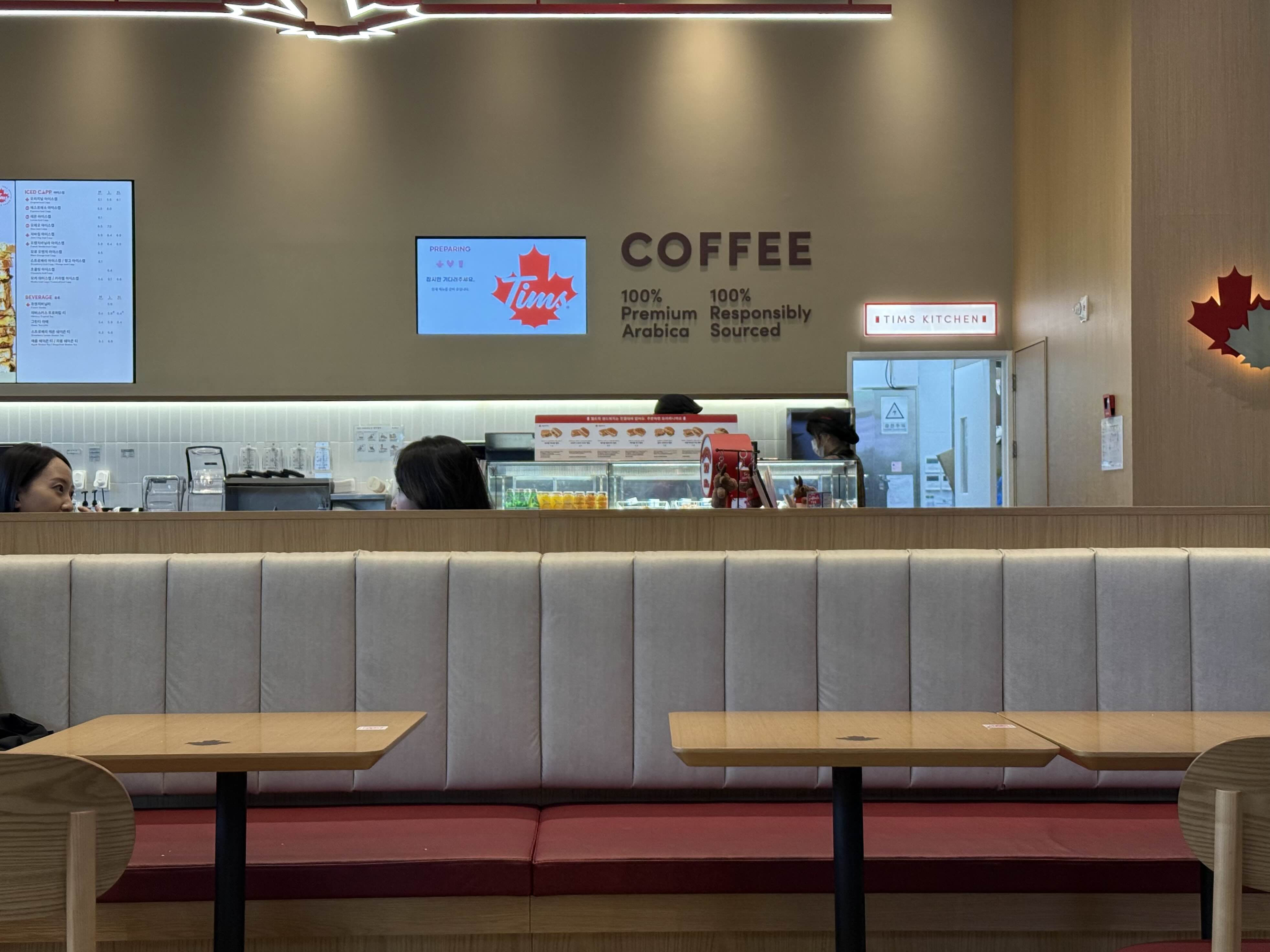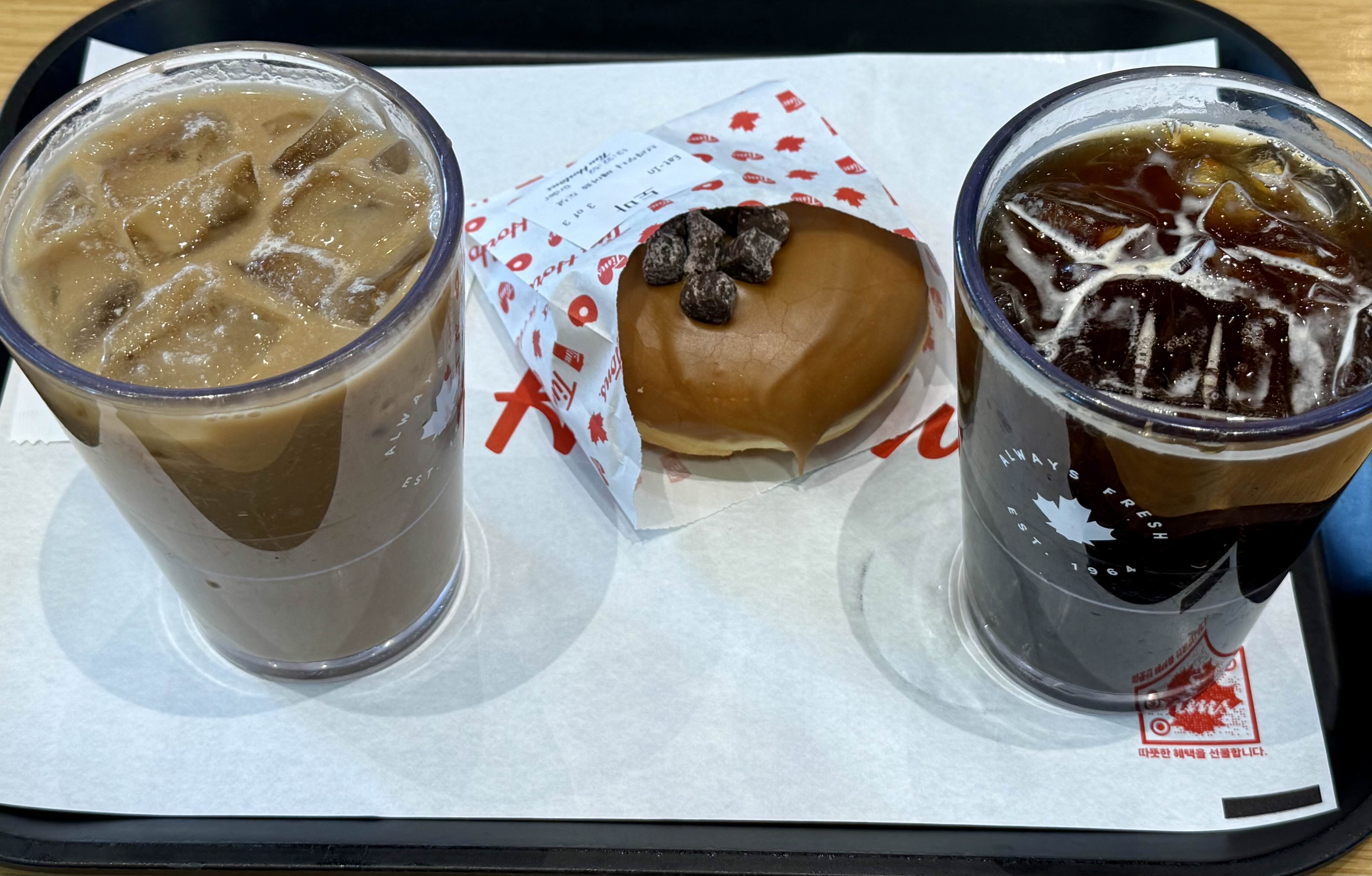 역시 이번에도 친구를 끌고 갔다. 여의도TP타워점에 같이 갔던 친구처럼, 이 친구도 팀 홀튼이 처음이었고 둘 다 팀 홀튼의 존재도 모르고 있었다. 팀 홀튼 분발해야 할 듯 ㅠㅠ 그래도 우리나라에서 팀 홀튼 영업 실적이 그리 좋지 않다는 기사를 여러 번 봤는데 내가 갔던 매장들은 다 많이 붐비는 편이었음.