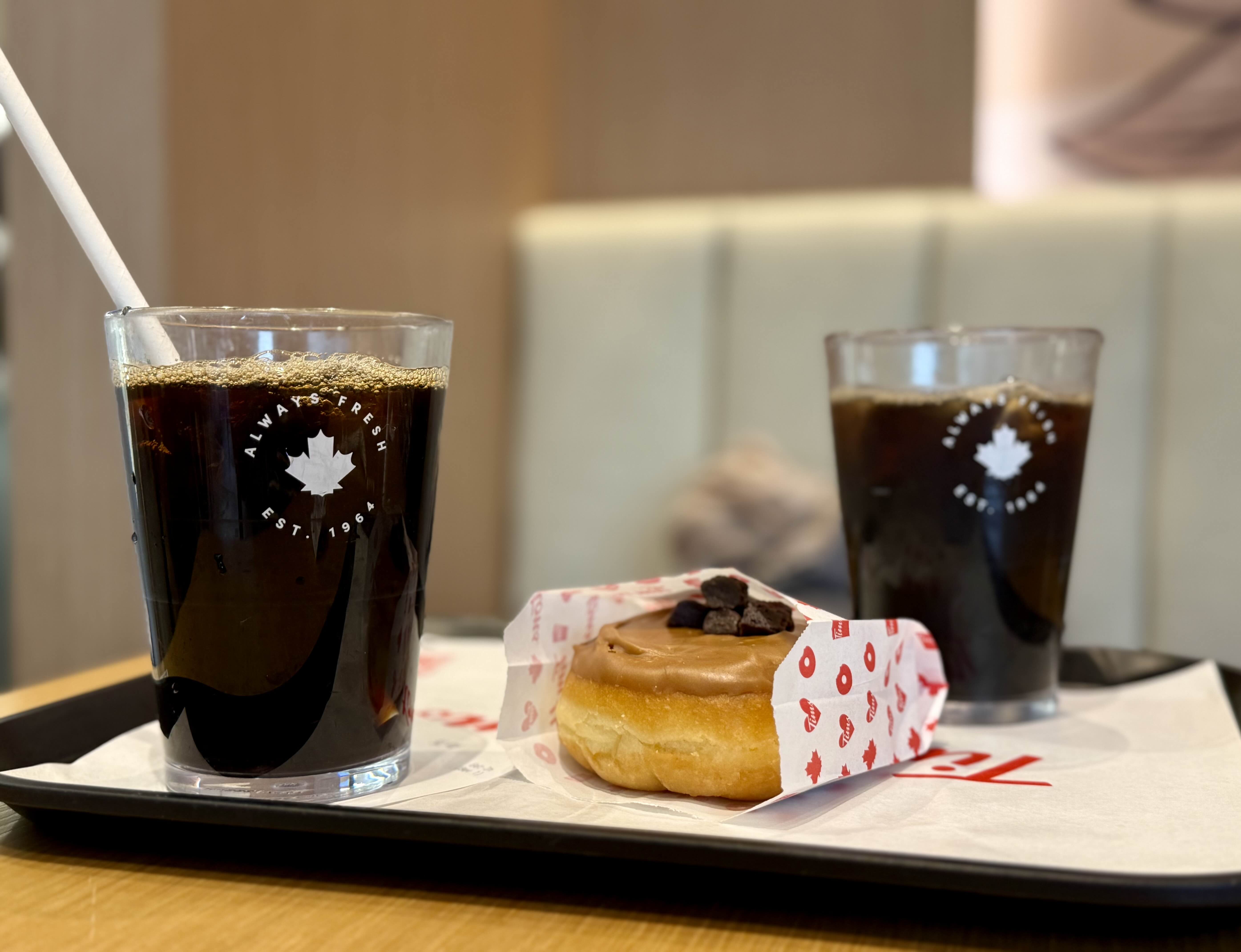 내가 주문한 아이스 싱글싱글 역시 이번에 처음 먹어 본 것인데, 팀 홀튼의 시그니쳐인 더블더블을 먹어 보고 싶었지만 그건 이미 점심을 잔뜩 먹은 후 마시기에는 너무 헤비할 것 같았기에 대신 싱글싱글을 골랐다. 싱글싱글은 브루 커피에 크림 하나 설탕 하나를 넣은 것이고, 더블더블은 크림 둘, 설탕 둘. 그리고 트리플 트리플도 있다.