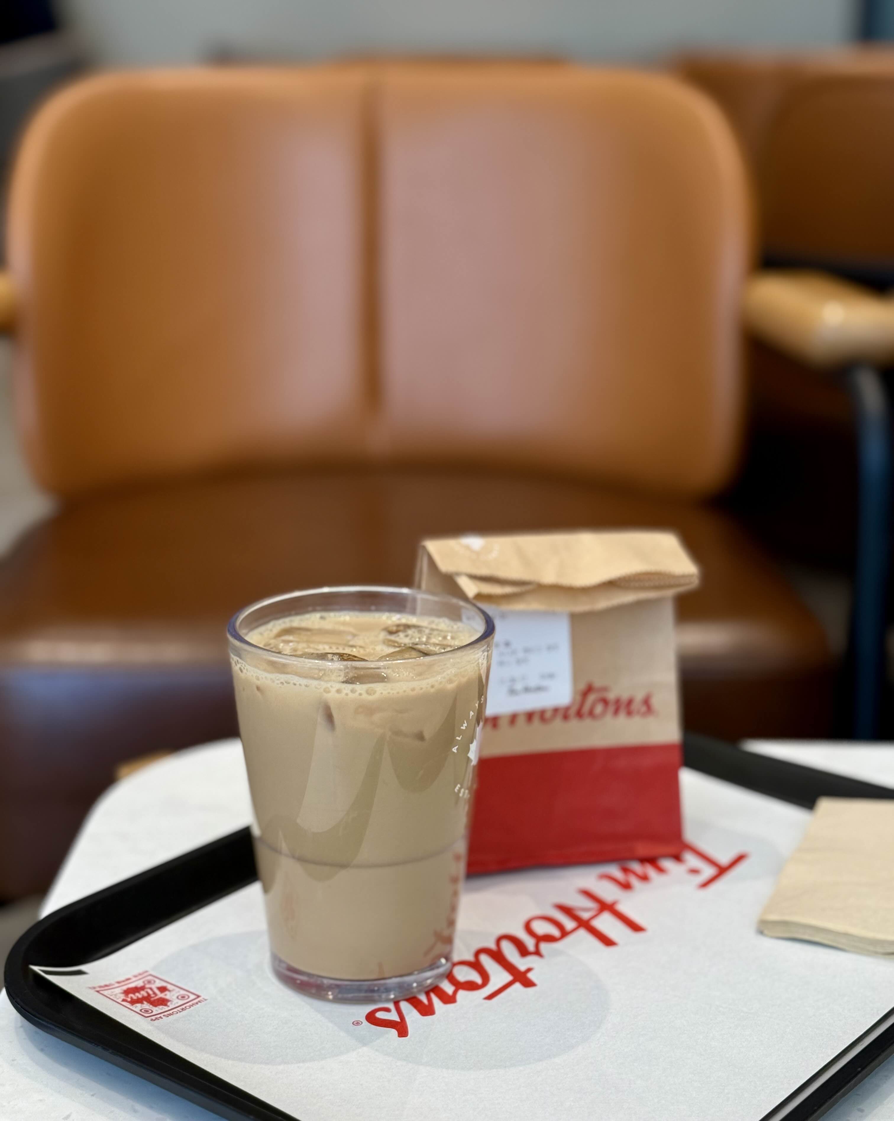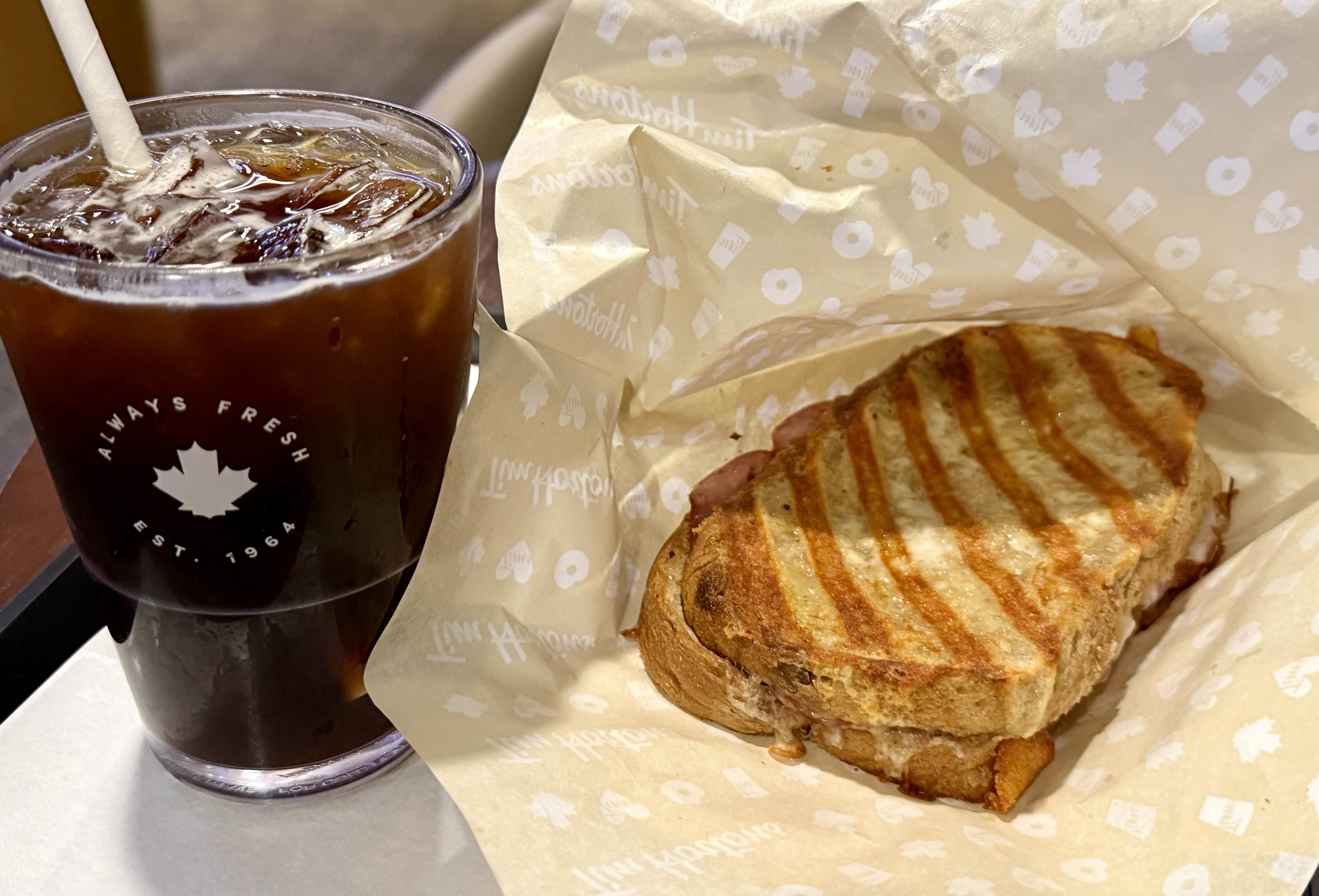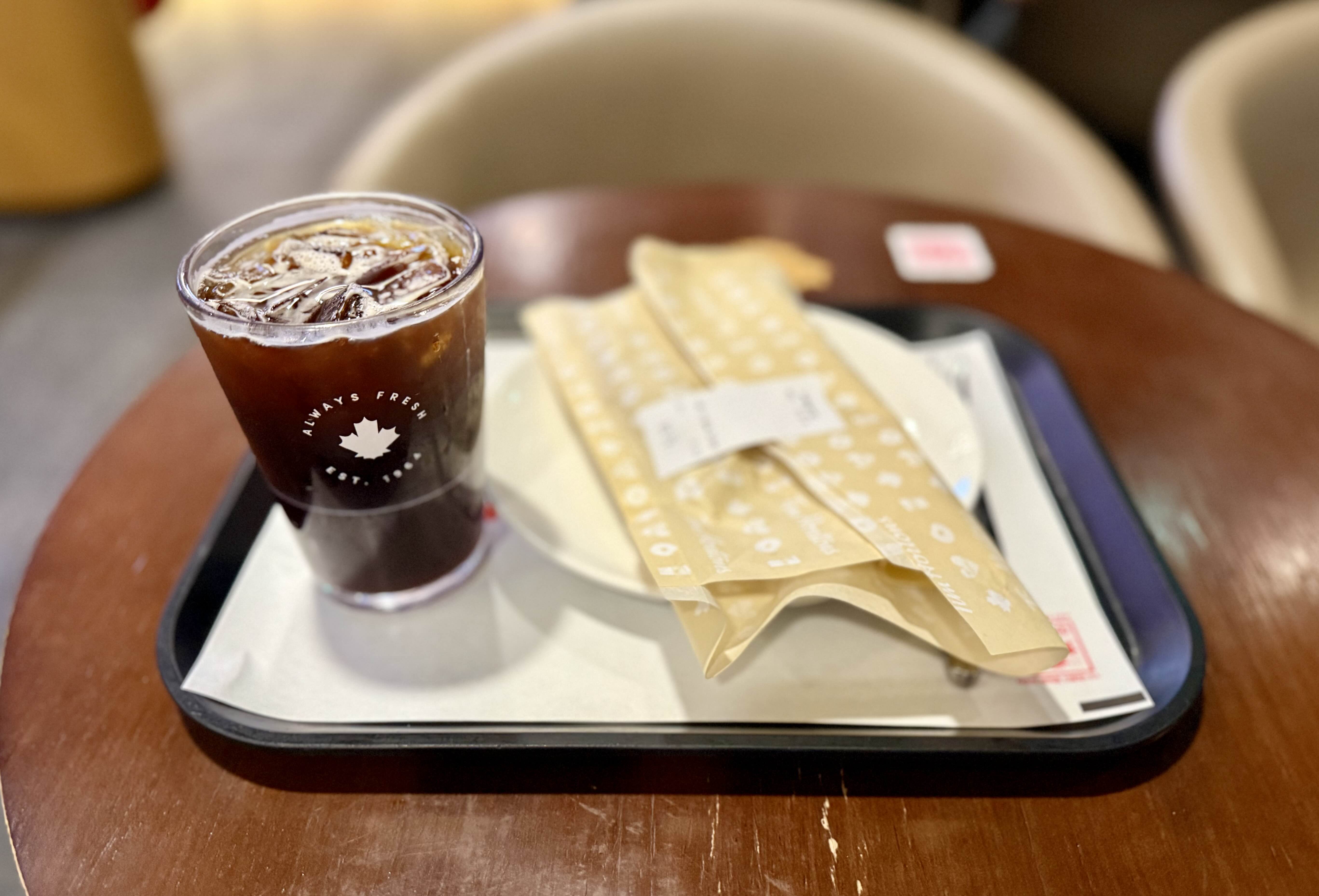 집에 가서 밥 먹어도 되는데 비 맞으며 꾸역꾸역 팀 홀튼 매장을 찾아가 저녁으로 아이스 아메리카노와 메이플햄앤치즈멜트 세트를 주문했다. 살짝 현타 옴.