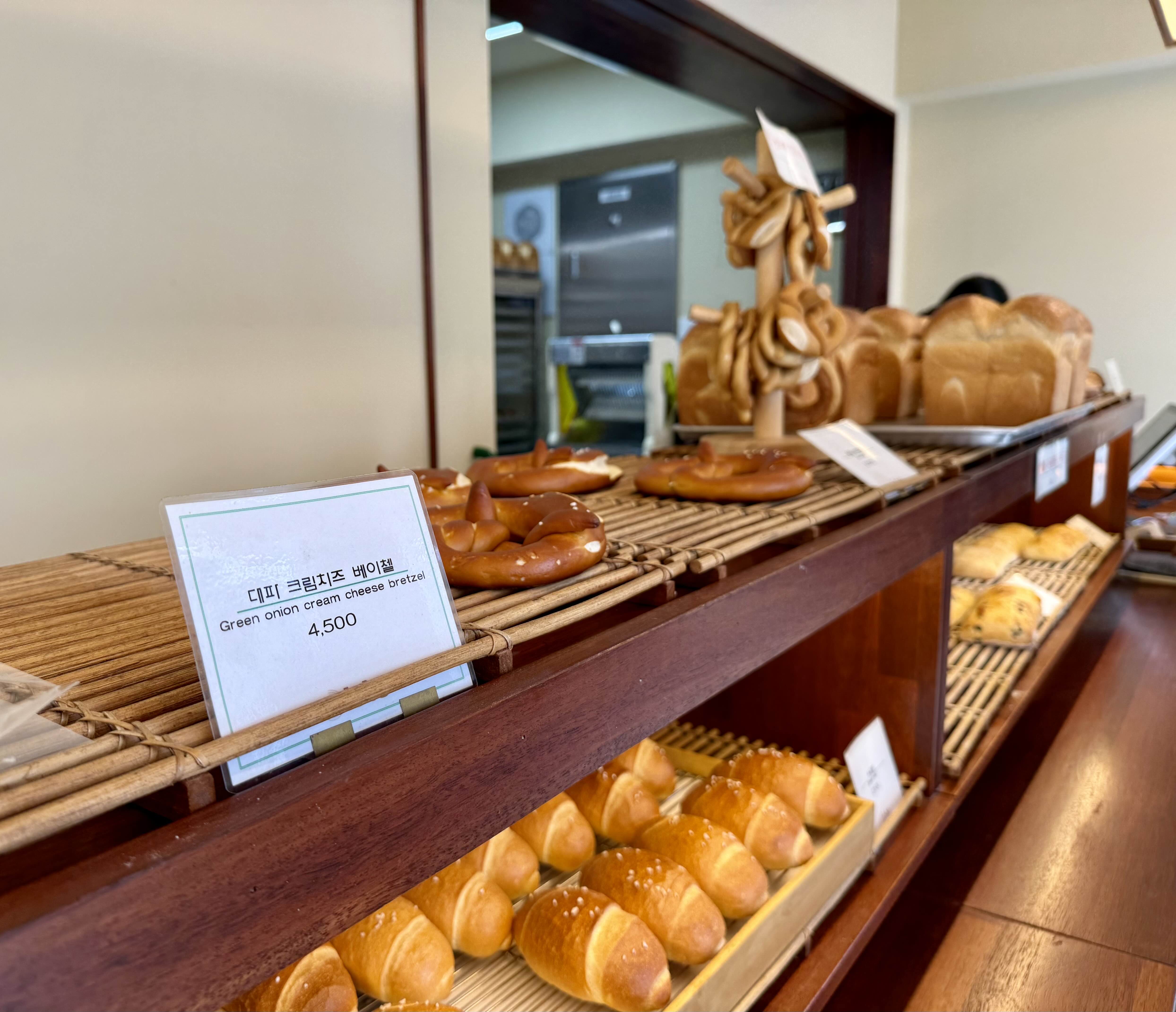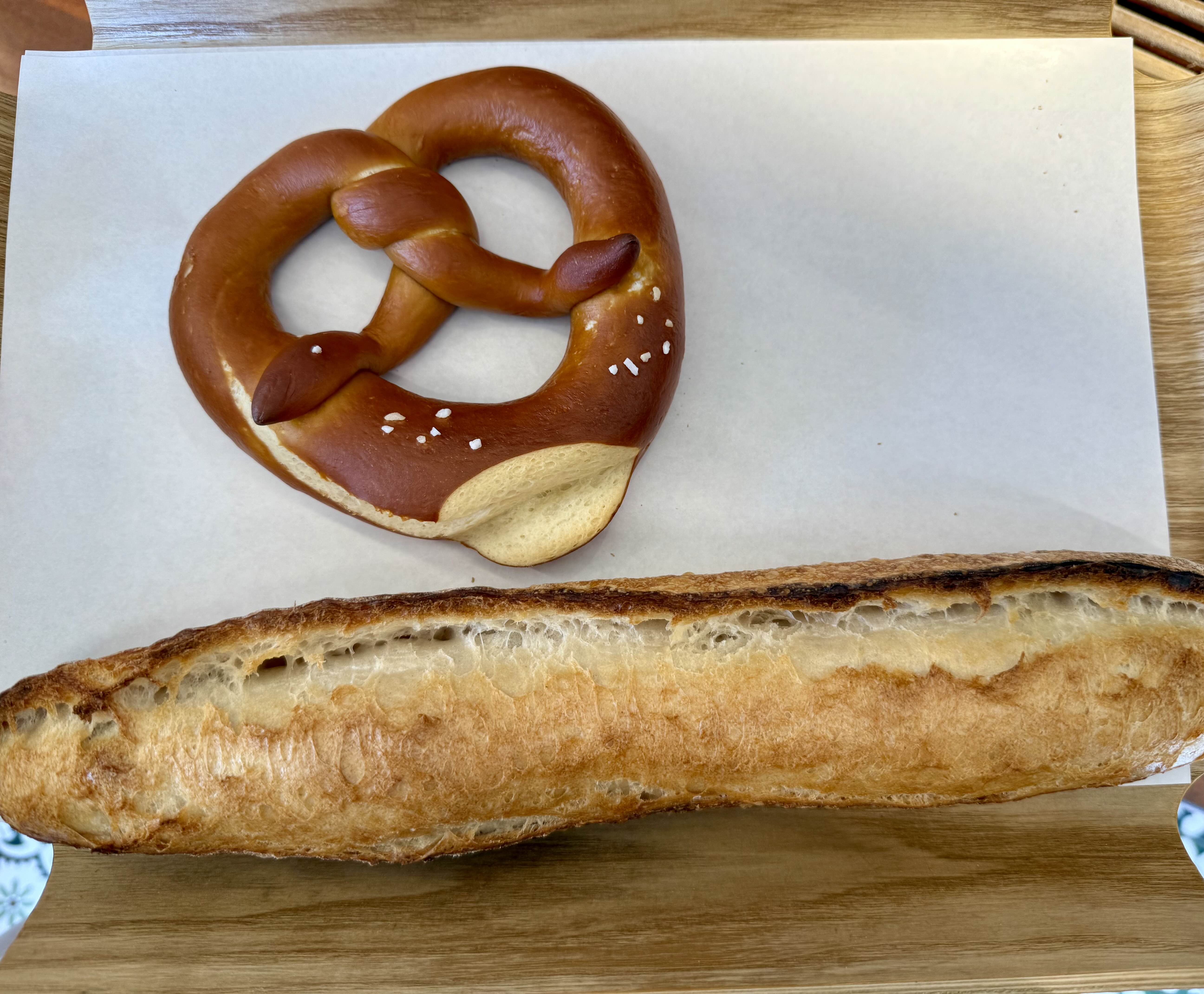 브레첼(2500원)과 바게뜨(2700원) 두 개만 구입했다. 바게뜨는 갓 나온 것인지 따끈따끈해서 기분이 좋았다.