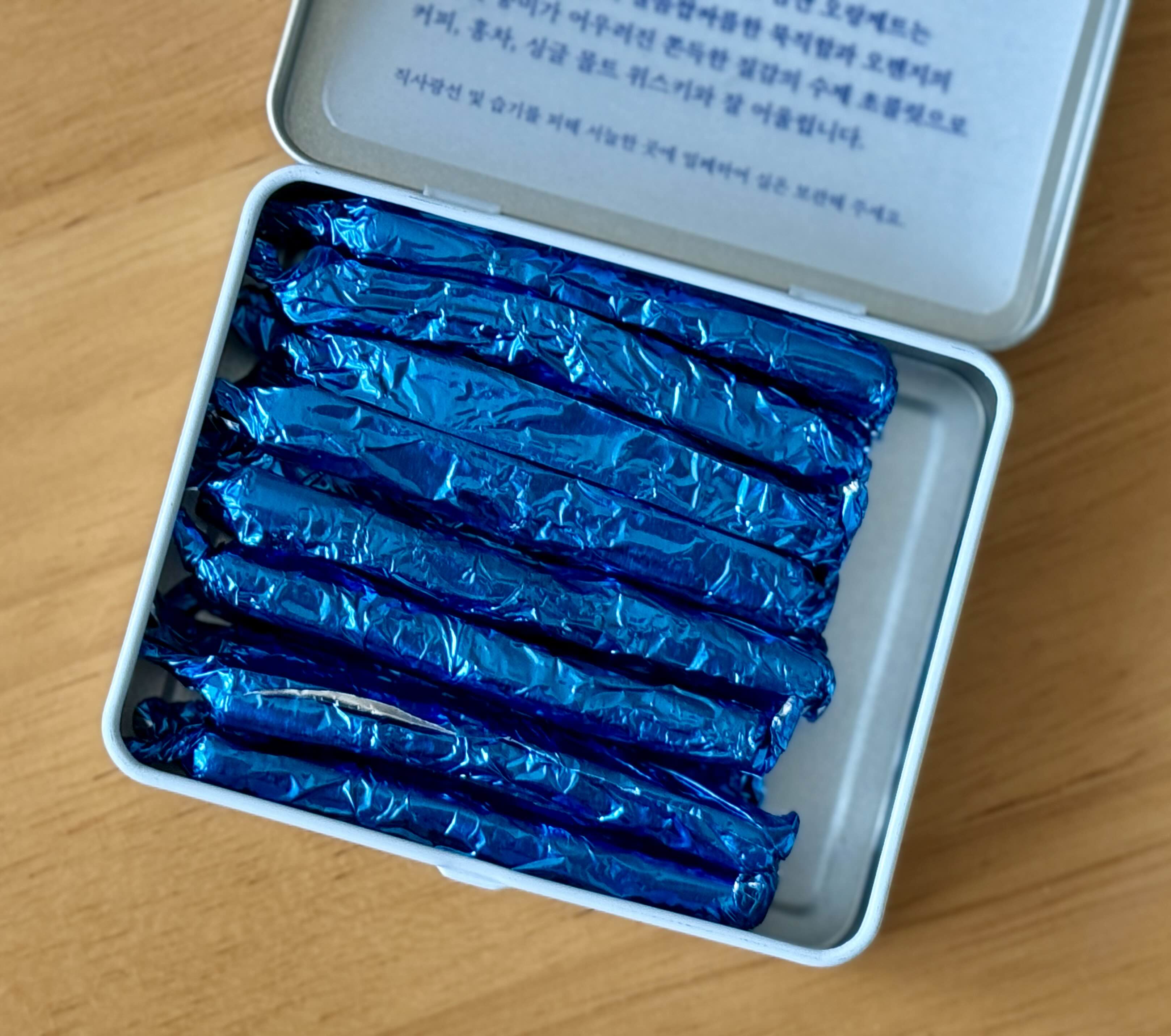 설명서에 커피, 홍차, 싱글몰트위스키랑 잘 어울린다고 되어 있는데 진짜 위스키 안주로 먹으면 딱일 듯.