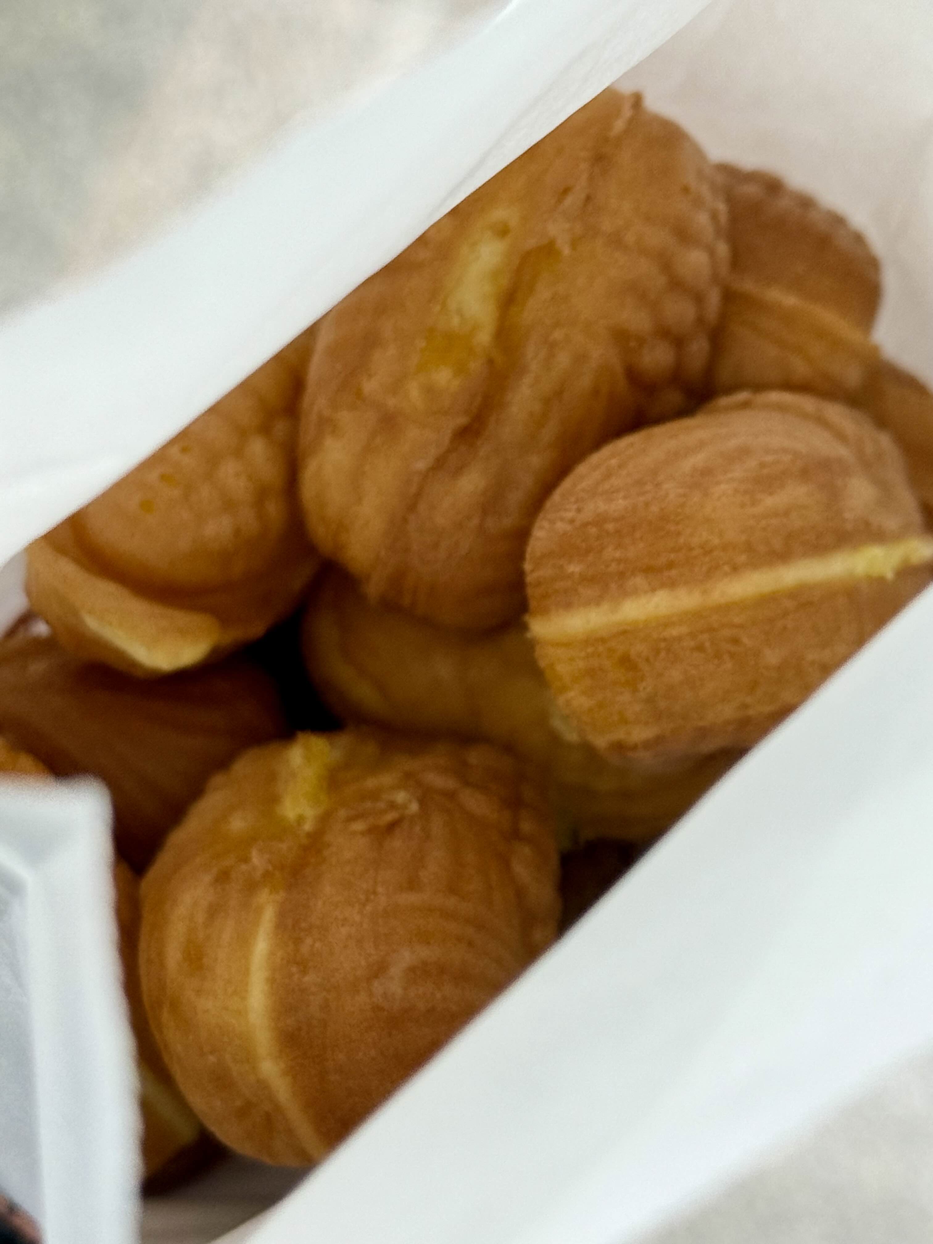 기대에 차서 집에 가져갔으나 내가 알던 그 땅콩빵이 아님. 크고, 뻣뻣하고, 땅콩 반쪽이 투박하게 통째로 들어 있어 당황스러웠다.
