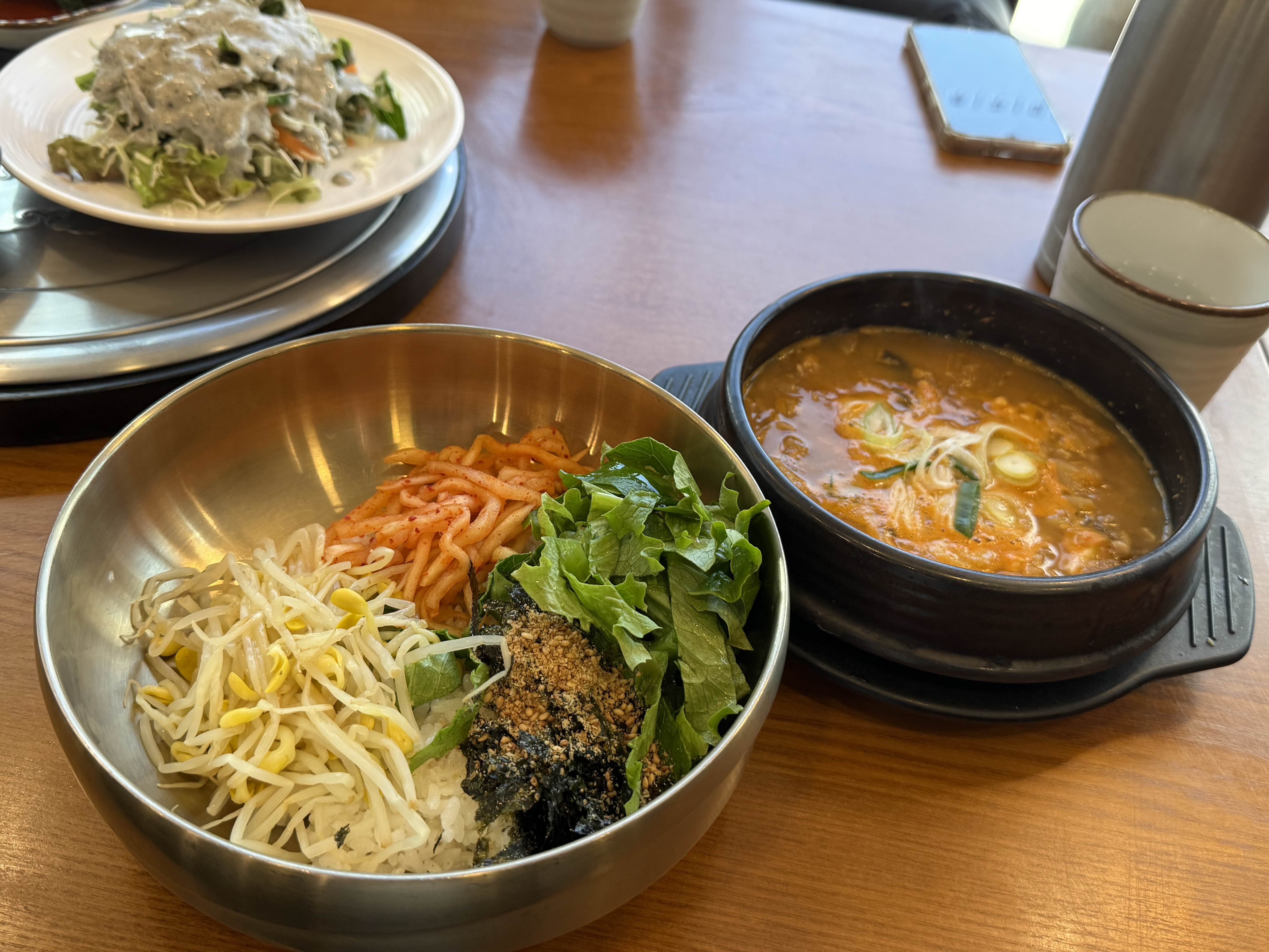 청국장과 비빔밥. 냄새가 강한? 진한? 청국장은 잘 못먹는 편인데 이곳의 청국장은 보통 된장찌개에 약간의 청국장의 풍미가 가해진 정도로, 나같은 초심자가 먹기에 딱 좋았다.