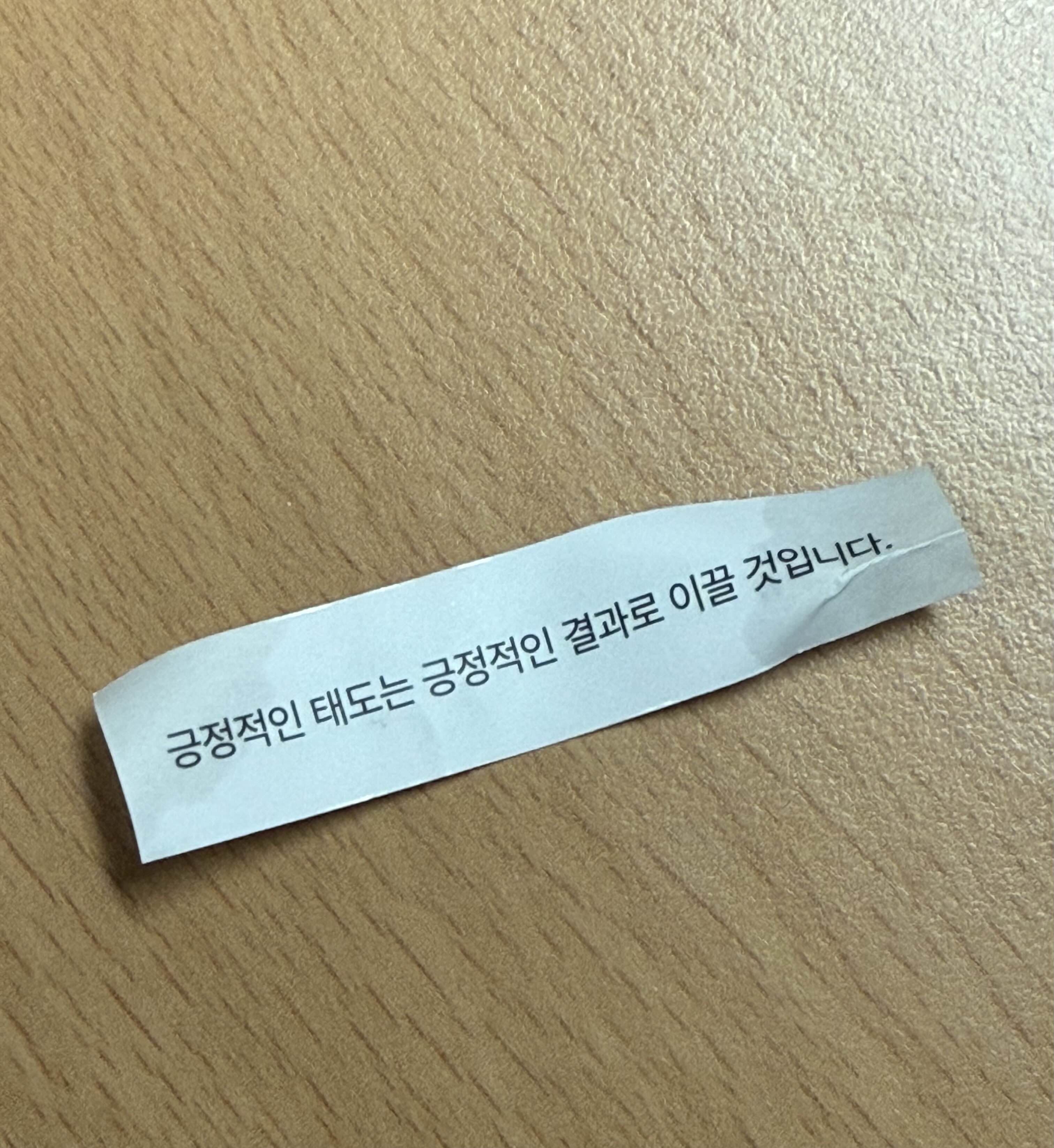 1월 초에 받은 포춘쿠키에서 나온 메세지. (누가 줬는지도 모른다. 출근하니 자리에 놓여있었음)