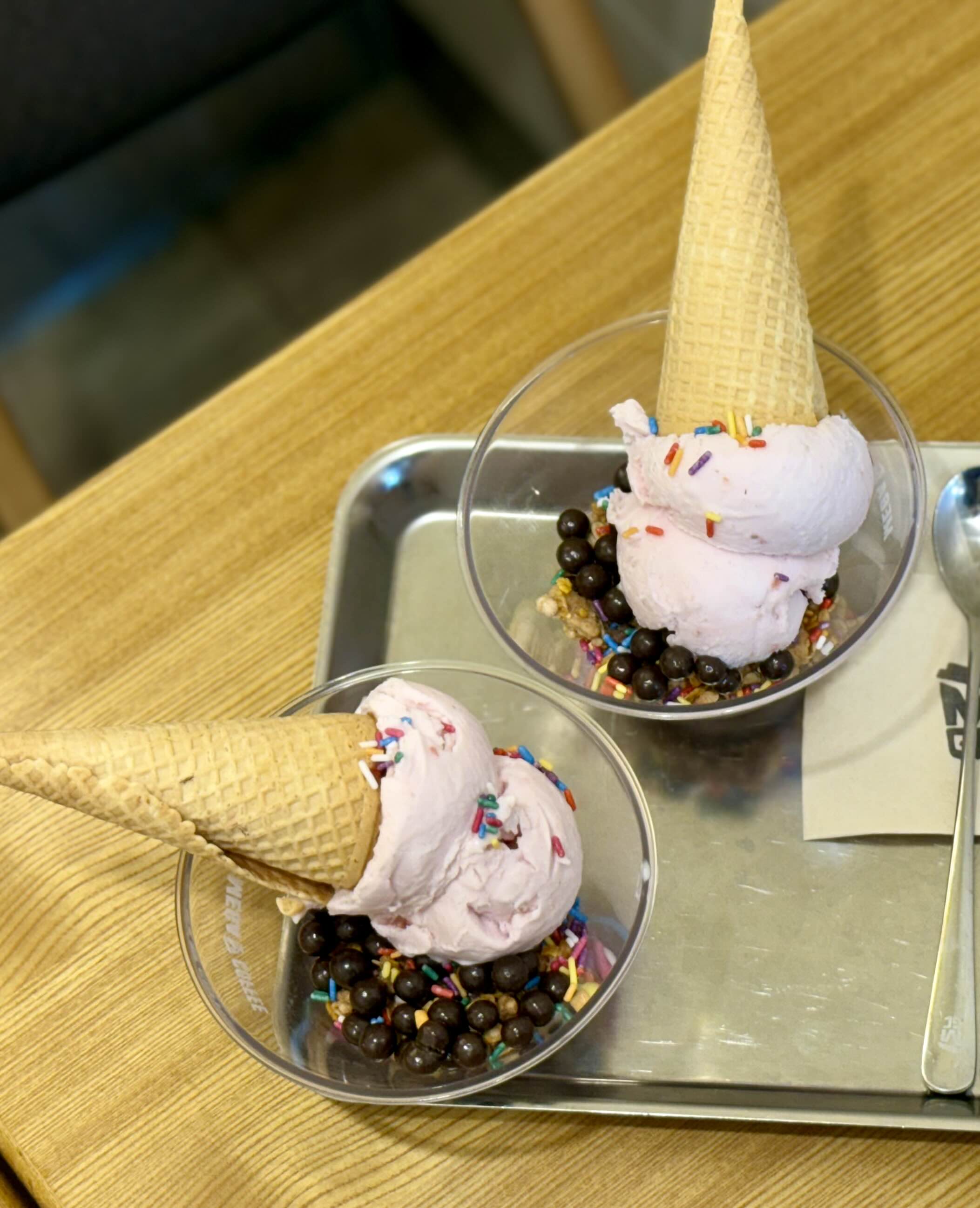 절대 고급 입맛은 아님에도 불구하고 이 아이스크림을 먹는 내내 현타가 왔다. 일단 딸기 아이스크림이 맛있지도 않고 같이 들어있는 그래놀라와 초코볼과 레인보우 스프링클 모두 너무 딱딱하기만 하고 맛이 없었다. (이건 개취의 영역이기는 한데, 원래도 빙수나 아이스크림에 시리얼이나 그래놀라 넣는 것을 싫어함)