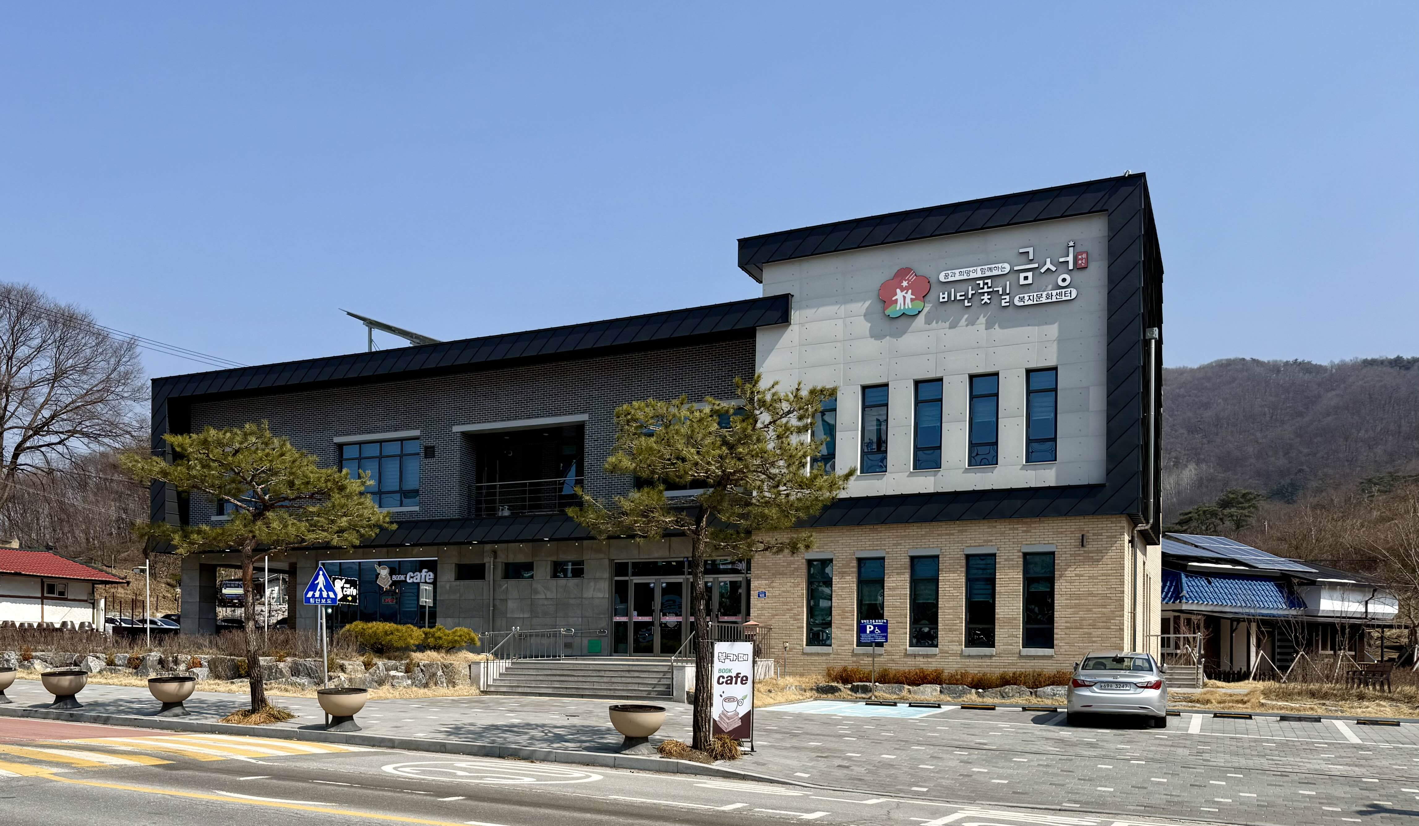 짜장면을 먹고 나와서는 금성반점 바로 건너편에 있는 금성 비단꽃길 복지문화센터 1층의 북카페에서 커피를 샀다. 들어가보니 북카페라기보다는 동네 사랑방스러운 느낌의 카페였는데 가격 대비 맛은 평범했지만